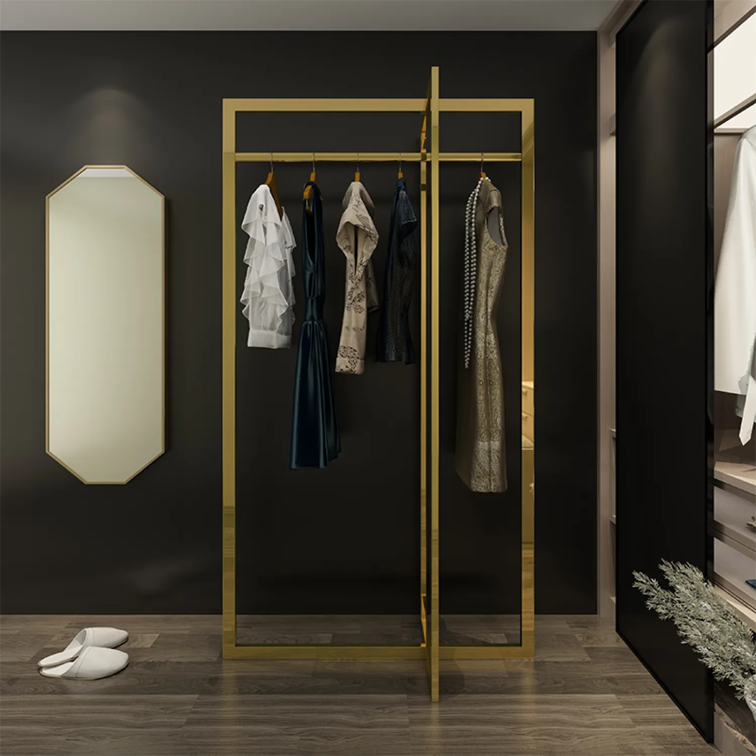 С ее помощью вы сможете удобно хранить и демонстрировать свою одежду, аксессуары и другие предметы. Благодаря своей прочной конструкции, она обеспечит надежную поддержку для ваших вещей.