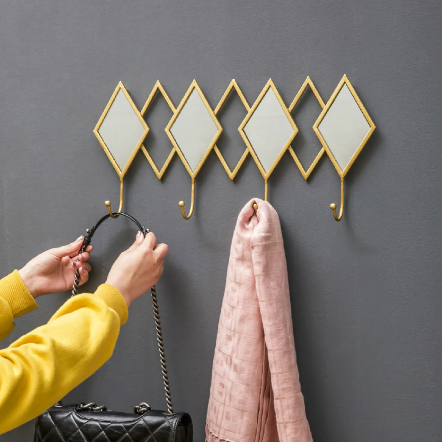 Приведите свою прихожую в порядок с помощью элегантной и стильной дизайнерской вешалки-зеркала LaLume-KKK00109! Эта функциональная и привлекательная вешалка не только поможет вам организовать пространство, но и добавит изысканности вашему интерьеру.