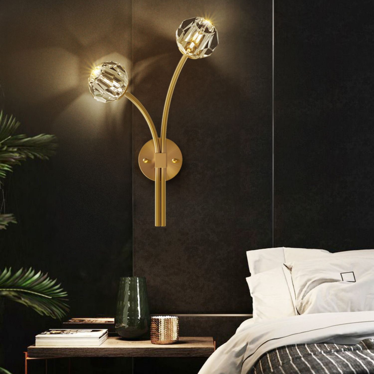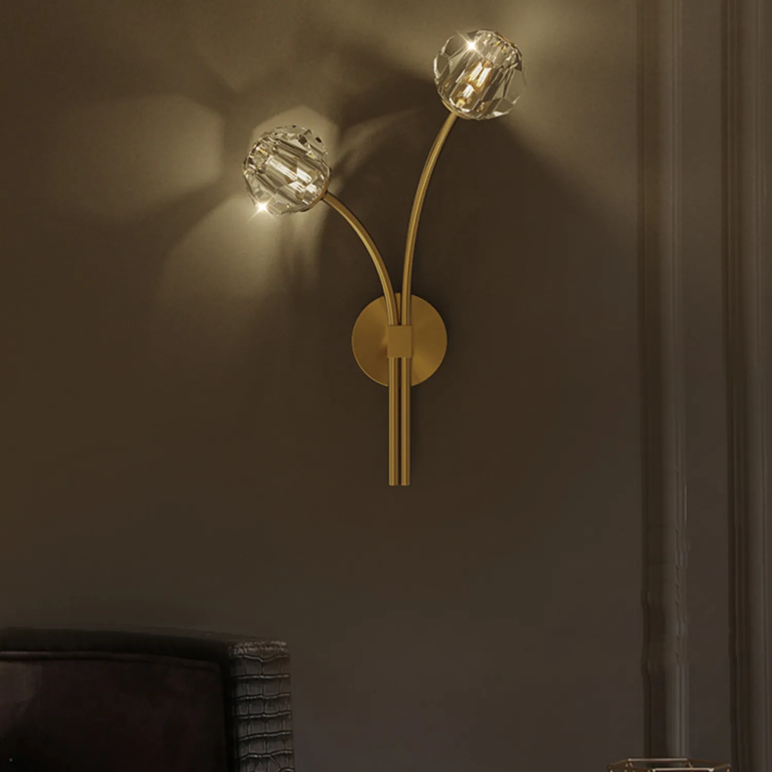Настенный светильник оснащен двумя лампочками, которые обеспечивают яркое и равномерное освещение. Вы сможете наслаждаться комфортным и приятным светом, который создаст уютную атмосферу в вашем доме.