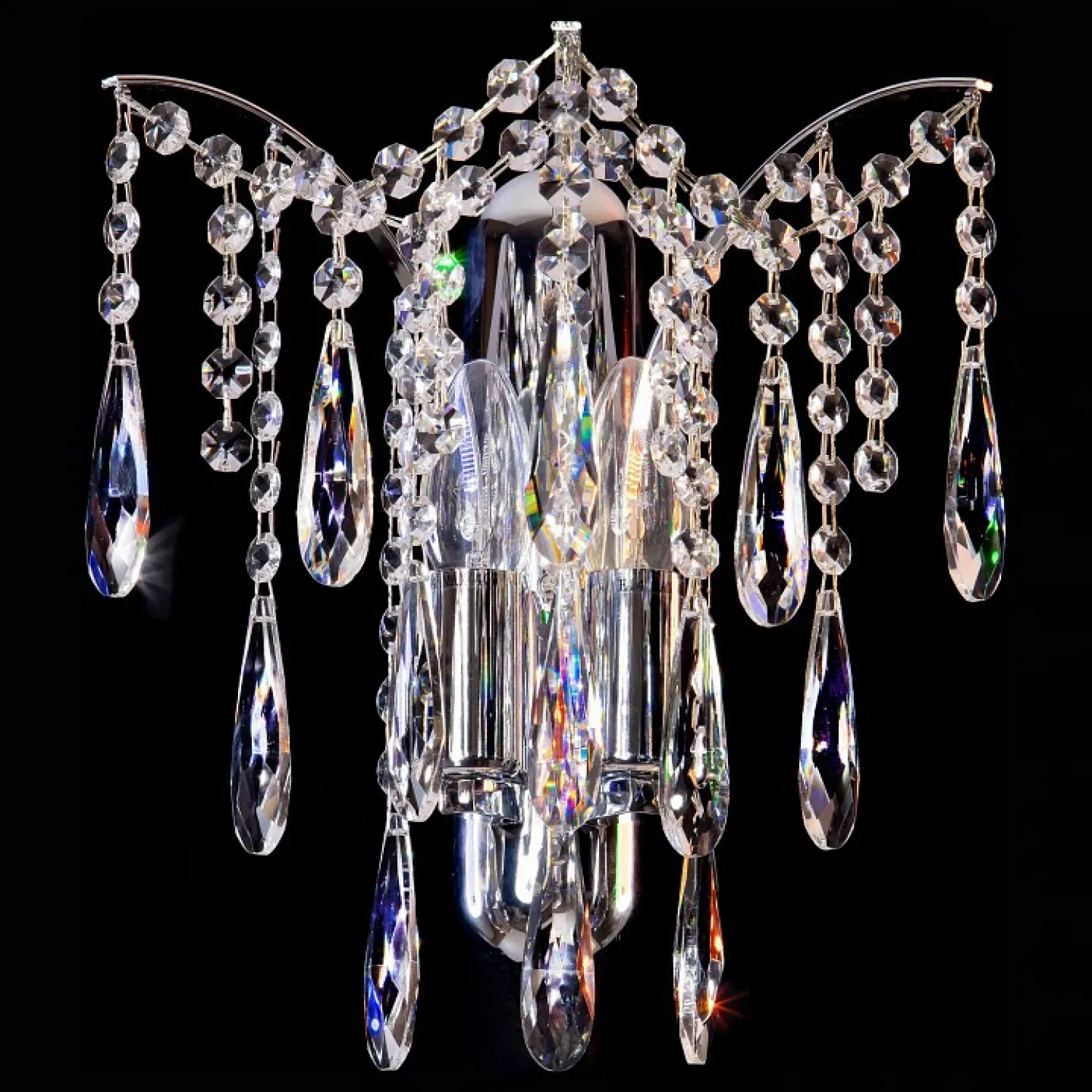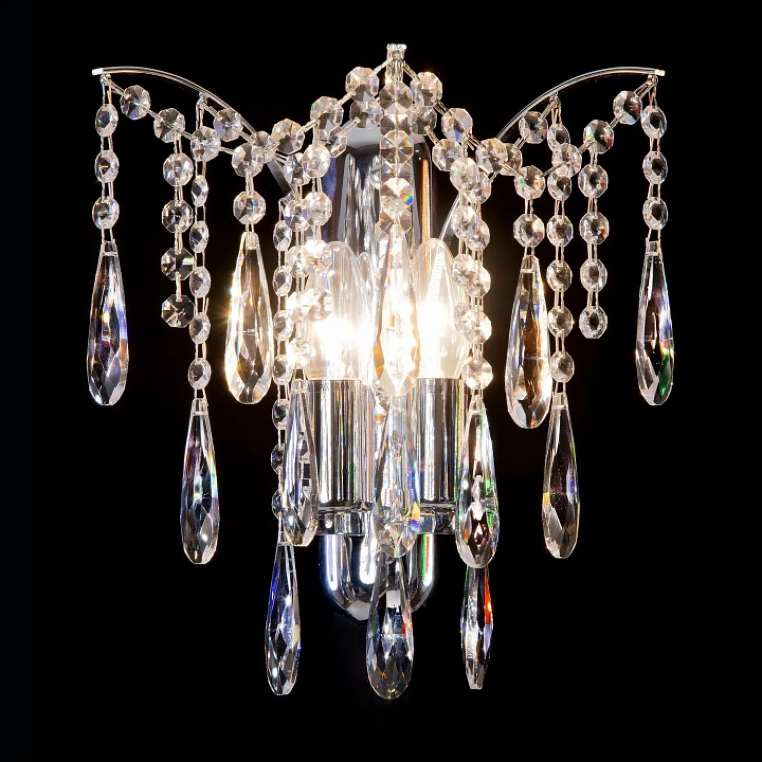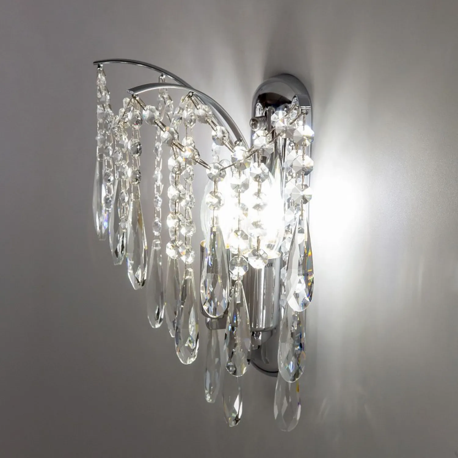 Особенности этого бра включают в себя элегантный металлический каркас, покрытый хромированным слоем, который придает ему блеск и привлекательность. Мягкий свет, создаваемый двумя лампами с цоколем Е14, создает уютную атмосферу и приятное освещение в комнате.