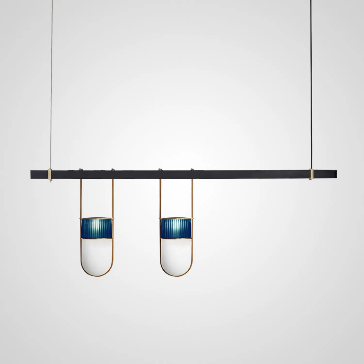 Дизайнерский реечный светильник со стеклянными подвесными плафонами FARG Подвесной светильник FARG 2L - это идеальное решение для тех, кто ищет стильный и функциональный источник освещения для своего интерьера.