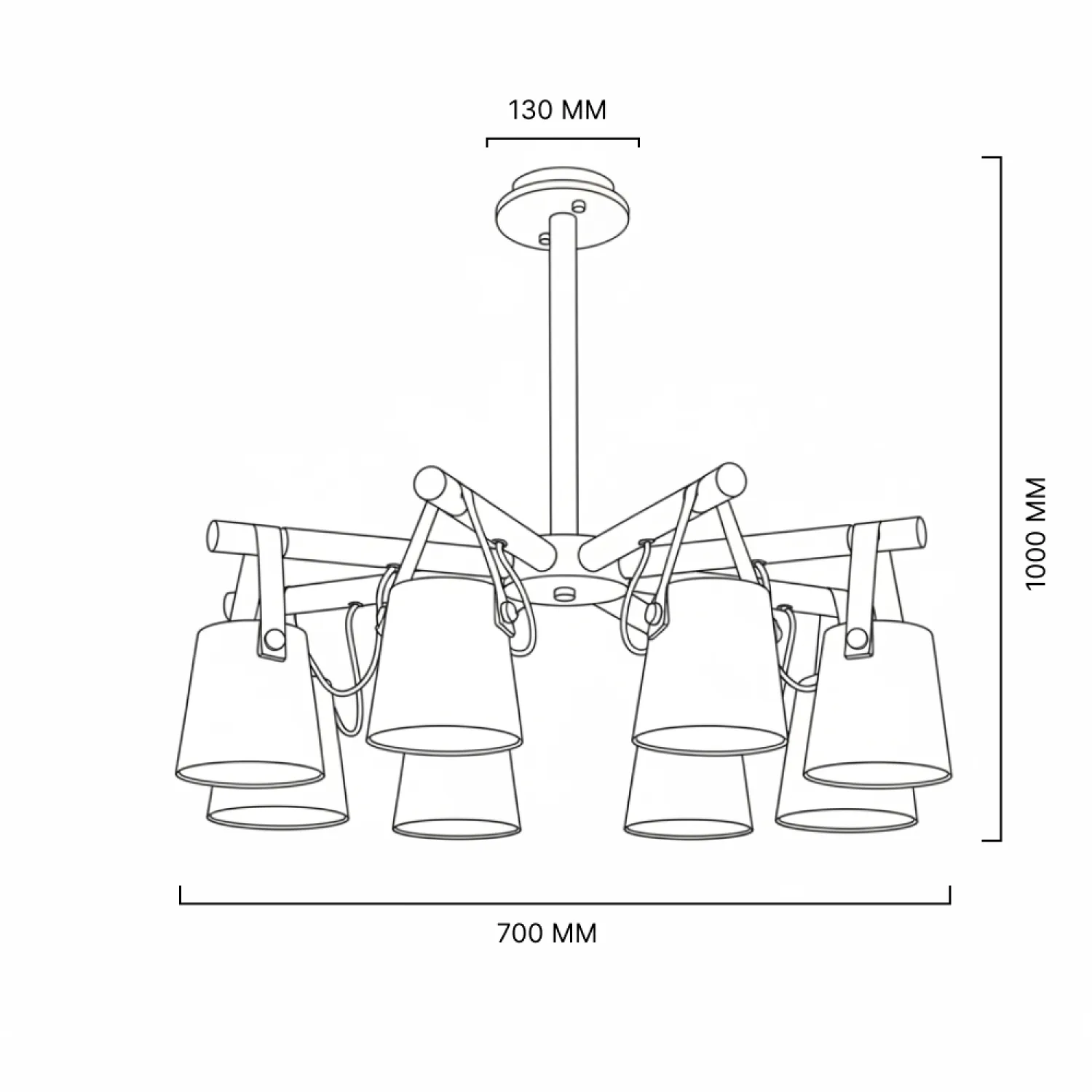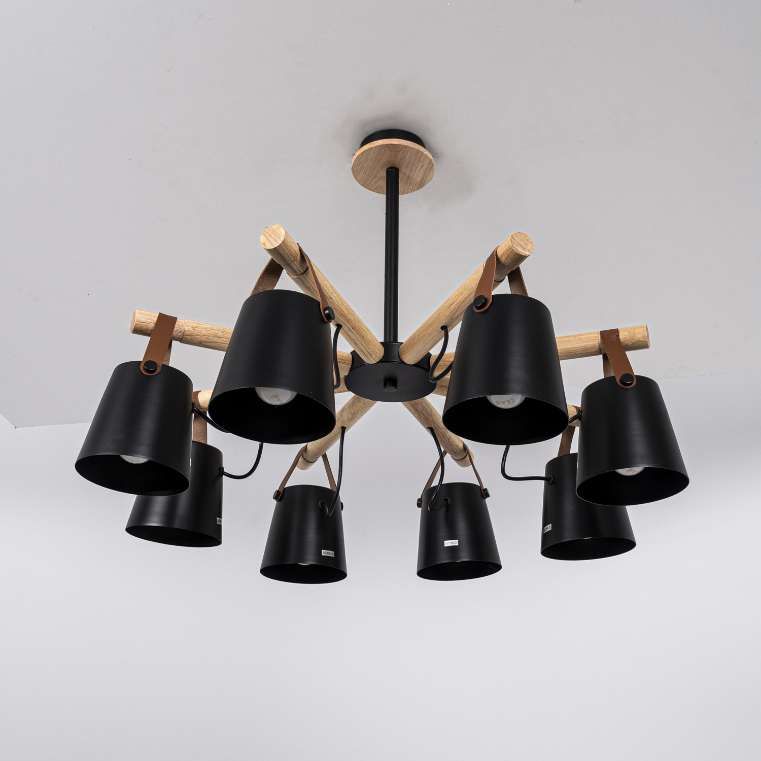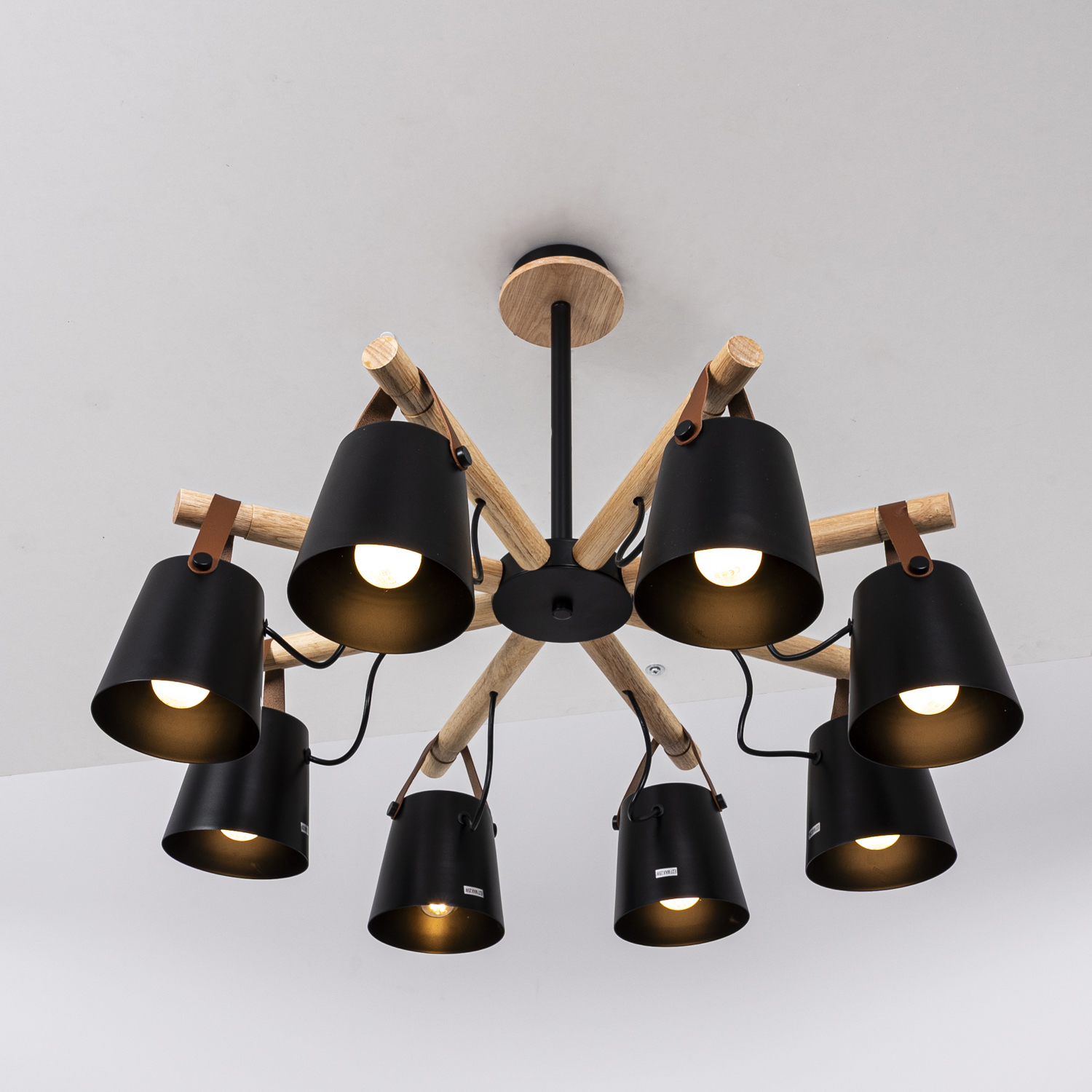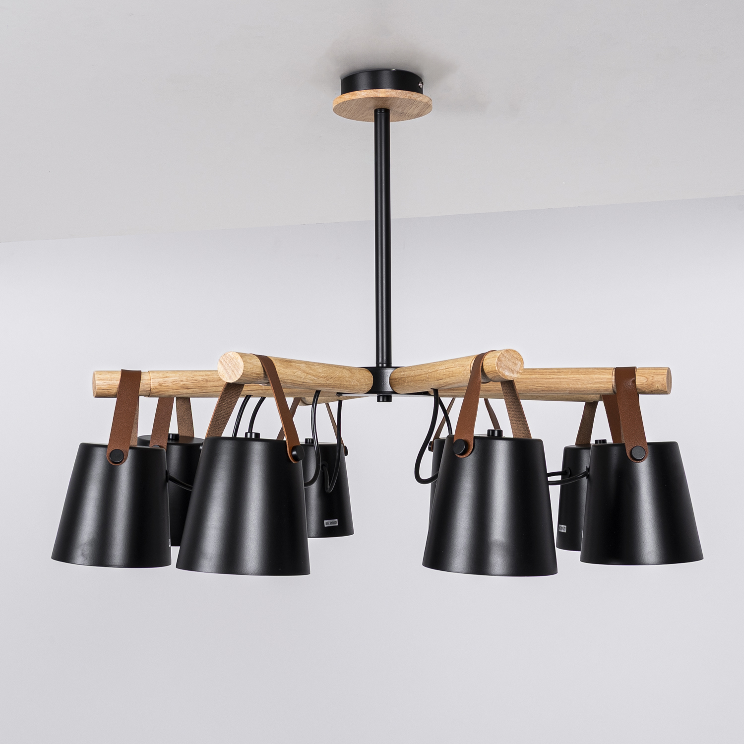 Скандинавская люстра с деревянным каркасом лучевой конструкции, металлическими абажурами и гармоничным кожаным подвесом. Представлена в двух цветах. Используйте эту модель вместе с настенными светильниками из этой же серии для создания освещения в едином стиле! Люстра потолочная на штанге NATURA C8 black - это идеальное решение для тех, кто хочет добавить элегантности и стиля в свой интерьер. Сочетание черного металлического каркаса и прозрачных стеклянных плафонов создает уникальный дизайн, который станет настоящим украшением любого помещения. Благодаря своей потолочной конструкции, эта люстра обеспечивает равномерное освещение во всем помещении, создавая комфортную и уютную атмосферу. Люстра NATURA C8 black оснащена восемью лампочками, которые обеспечивают яркое и энергосберегающее освещение. Вы сможете настроить яркость и атмосферу в комнате, используя диммер (не включен в комплект). Эта люстра идеально подходит для гостиной, столовой или спальни, добавляя элегантности и стиля в любое помещение. Приобретая люстру потолочную на штанге NATURA C8 black, вы получаете не только качественный и функциональный светильник, но и стильный акцент, который подчеркнет вашу индивидуальность и хороший вкус в дизайне интерьера.