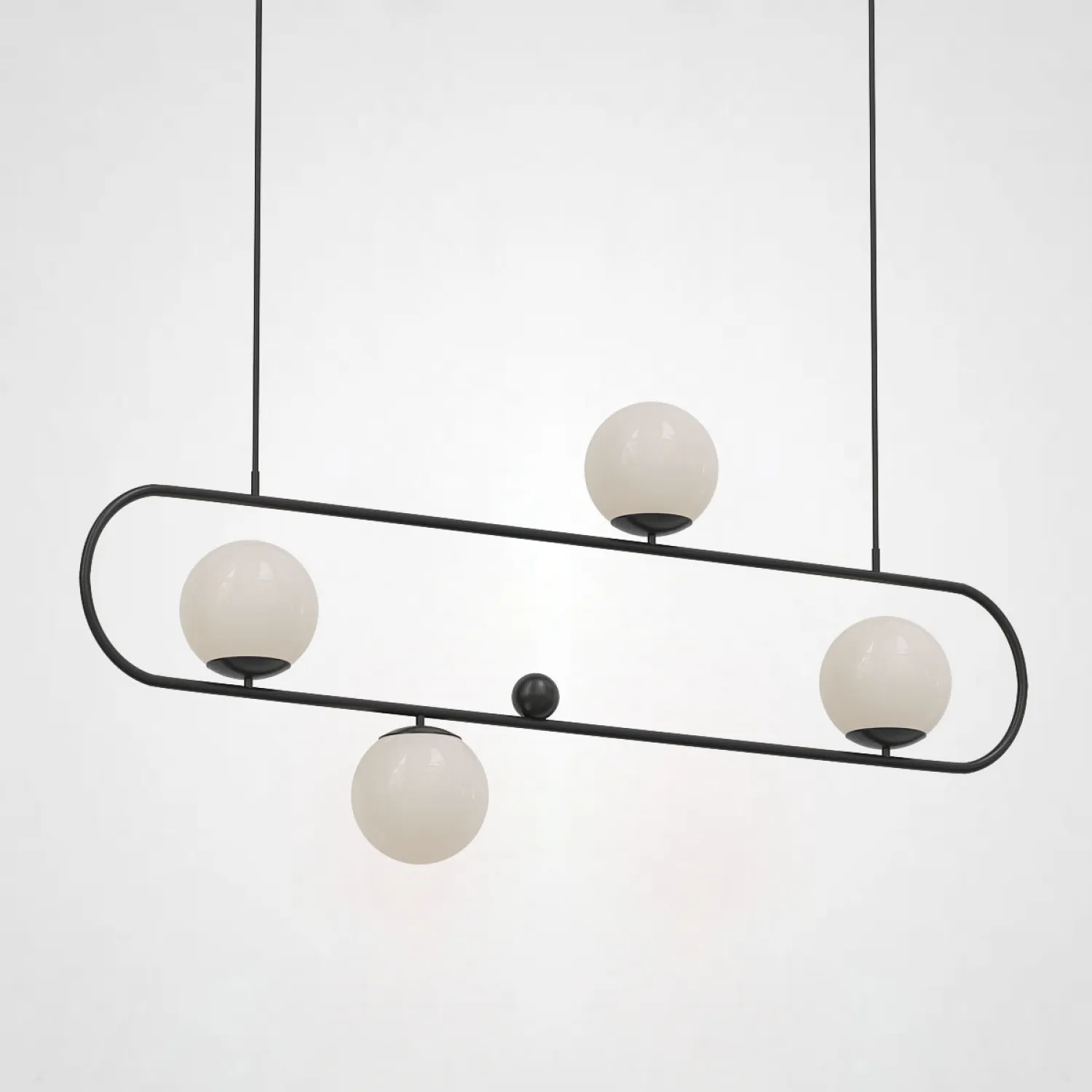 Подвесной дизайнерский светильник с несколькими шаровидными плафонами из матового стекла на кольцевом каркасе. Подвесной реечный светильник HOOP L120 ЧЕРНЫЙ - это стильное и функциональное освещение для вашего интерьера. Сочетание черного металлического каркаса и реечного дизайна придает этому светильнику современный и элегантный вид. Светильник оснащен 4 регулируемыми подвесами, что позволяет создавать различные композиции и подстраивать освещение под любые потребности. Он идеально подходит для освещения обеденного стола, кухонного острова или рабочего пространства. HOOP L120 ЧЕРНЫЙ обеспечивает яркое и равномерное освещение, создавая уютную атмосферу в помещении. Этот светильник станет отличным дополнением к современному интерьеру и привнесет в него нотку стиля и изысканности. Приобретите HOOP L120 ЧЕРНЫЙ и добавьте эстетики и функциональности в свой дом!