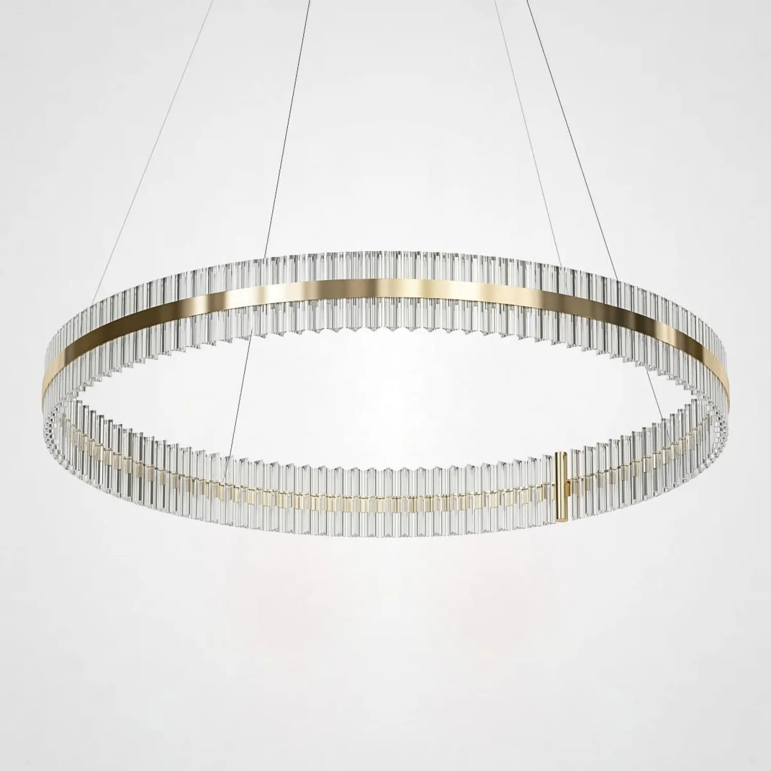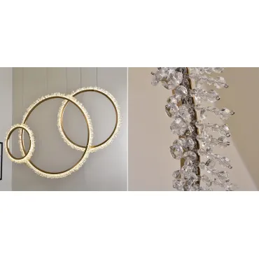 Светильник имеет круглую форму и изготовлен из прочного металла с хромированным покрытием, что придает ему элегантный и изысканный вид. Благодаря своему размеру (диаметр 120 см) он станет прекрасным акцентом в любом помещении.