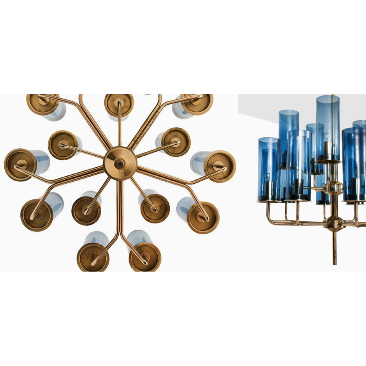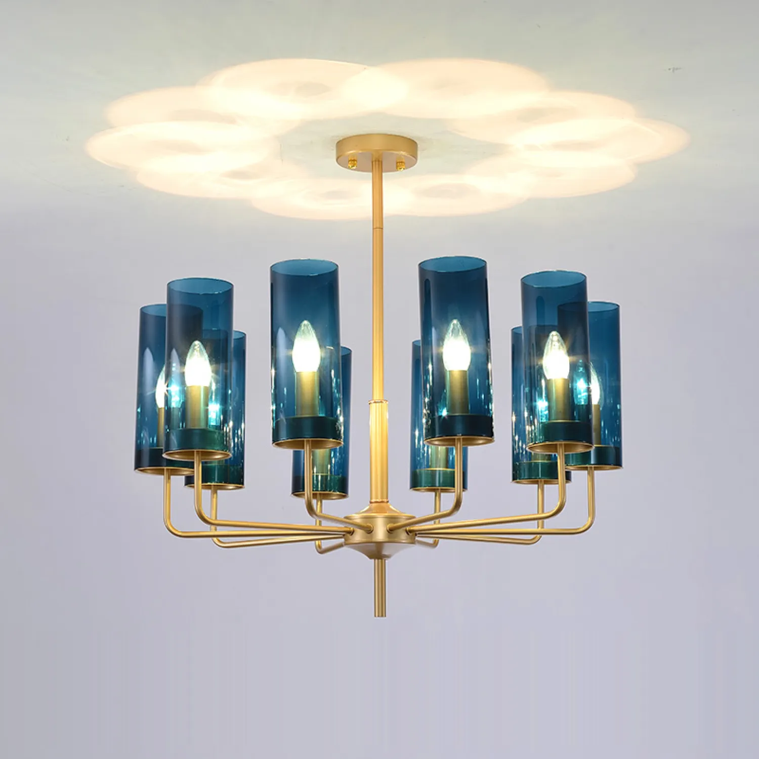Изготовленная из латуни и украшенная стеклянными трубками с голубым оттенком, эта люстра привлекает внимание своим уникальным дизайном и неповторимым стилем. Каждая деталь внимательно продумана, чтобы создать идеальное сочетание классической элегантности и современного шарма.