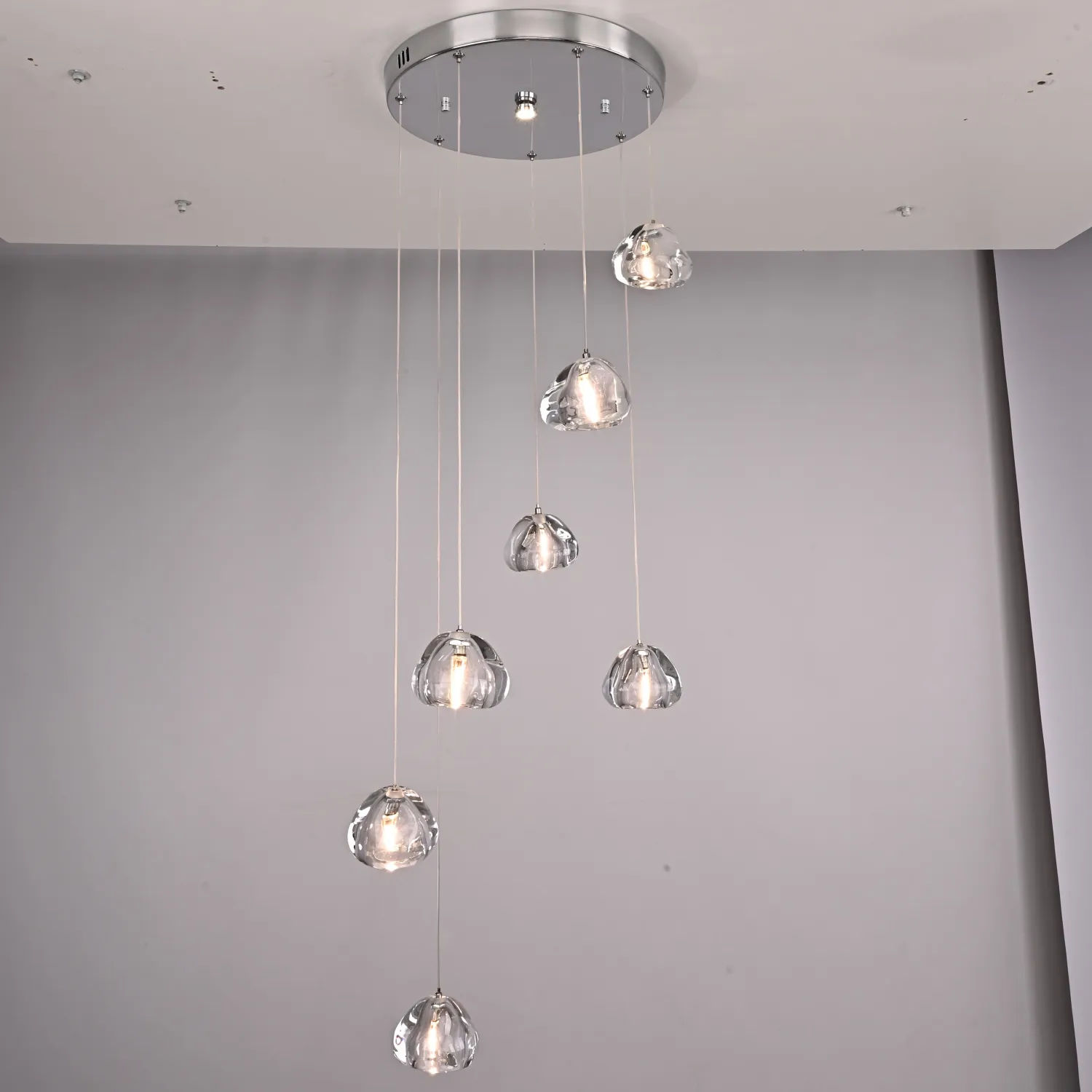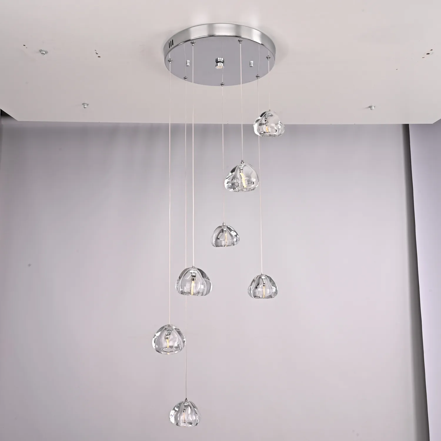 Светодиодный каскадный светильник с массивными стеклянными плафонами на общей потолочной плоскости. Дополнительные точечные светильники в основании, подсвечивают всю композицию и создают забавную игру преломления света. Встретим август каскадом падающих звезд. Выпускается на 3, 5, 7, 14 и даже 26 ламп. Так же по запросу возможно изготовить люстру любого размера с желаемым количеством подвесов. Хотите добавить роскоши и элегантности в свой интерьер? Тогда подвесная люстра METEORA 7 - ваш идеальный выбор! Эта потрясающая люстра изготовлена из высококачественных материалов, которые гарантируют ее долговечность и прочность. Кристальные подвески, сверкающие как алмазы, придают ей неповторимый шарм и создают эффект роскоши. METEORA 7 имеет семь ярких и красивых лампочек, которые создают яркое освещение в комнате. Благодаря своему стильному дизайну, эта люстра станет настоящим украшением вашего интерьера, добавляя ему изысканности и изящности. Установка этой люстры легка и проста, а ее размеры позволяют подвесить ее в любом помещении - будь то гостиная, столовая или спальня. METEORA 7 идеально подходит для любого стиля интерьера, будь то классический, современный или ретро. Не упустите возможность создать неповторимую атмосферу в своем доме с помощью подвесной люстры METEORA 7. Порадуйте себя и своих гостей этим великолепным и стильным аксессуаром, который станет настоящим центром внимания в вашем интерьере.