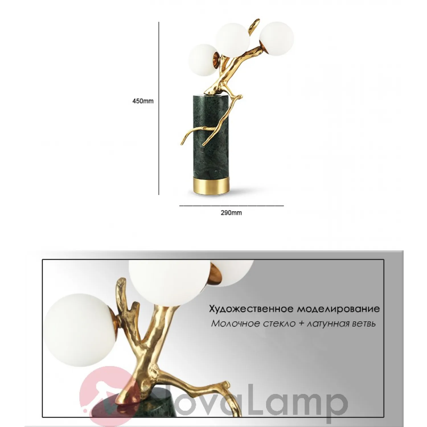 Уникальный дизайн, натуральные материалы из латуни, стекла и мрамора делают данную модель особенной для богатых современных интерьеров.