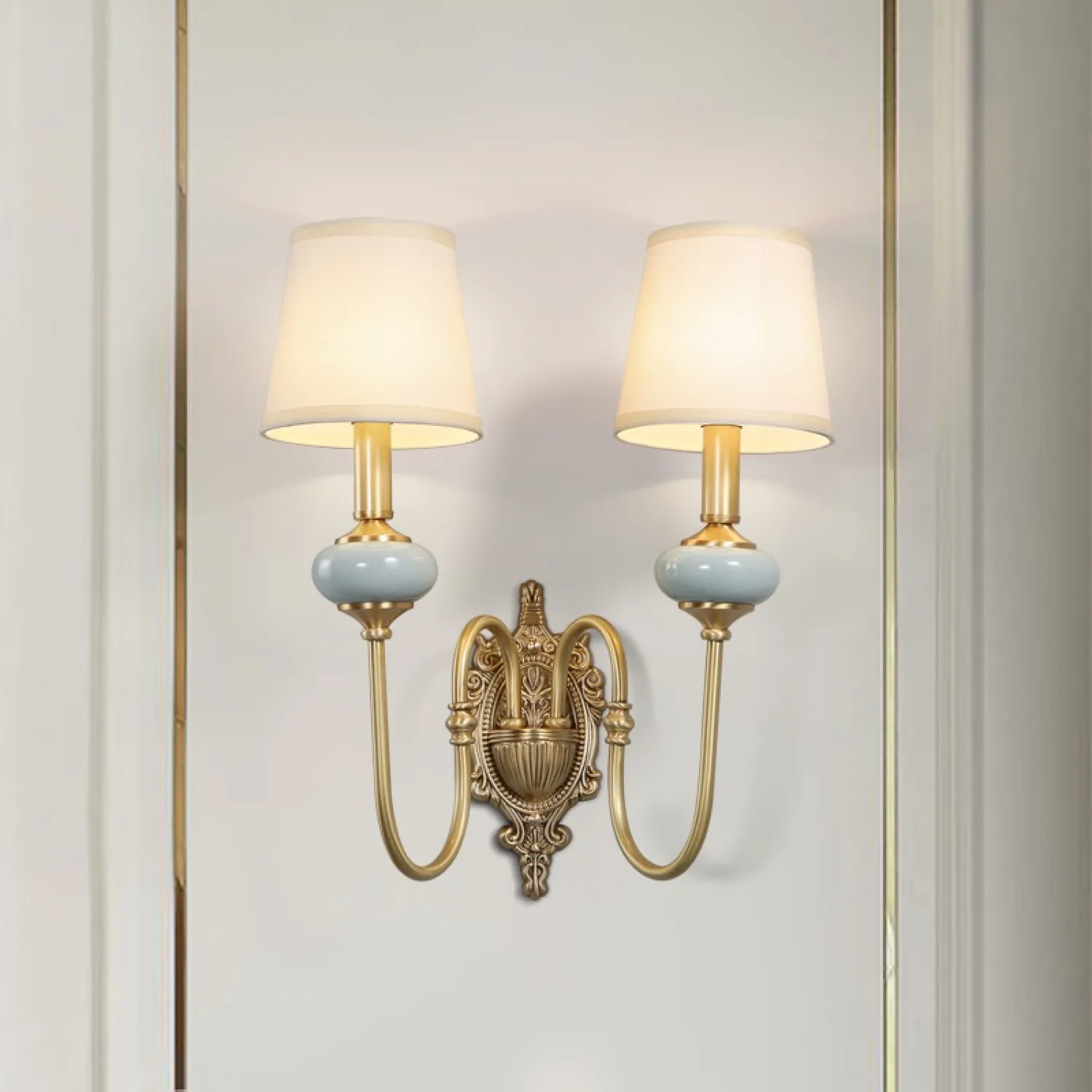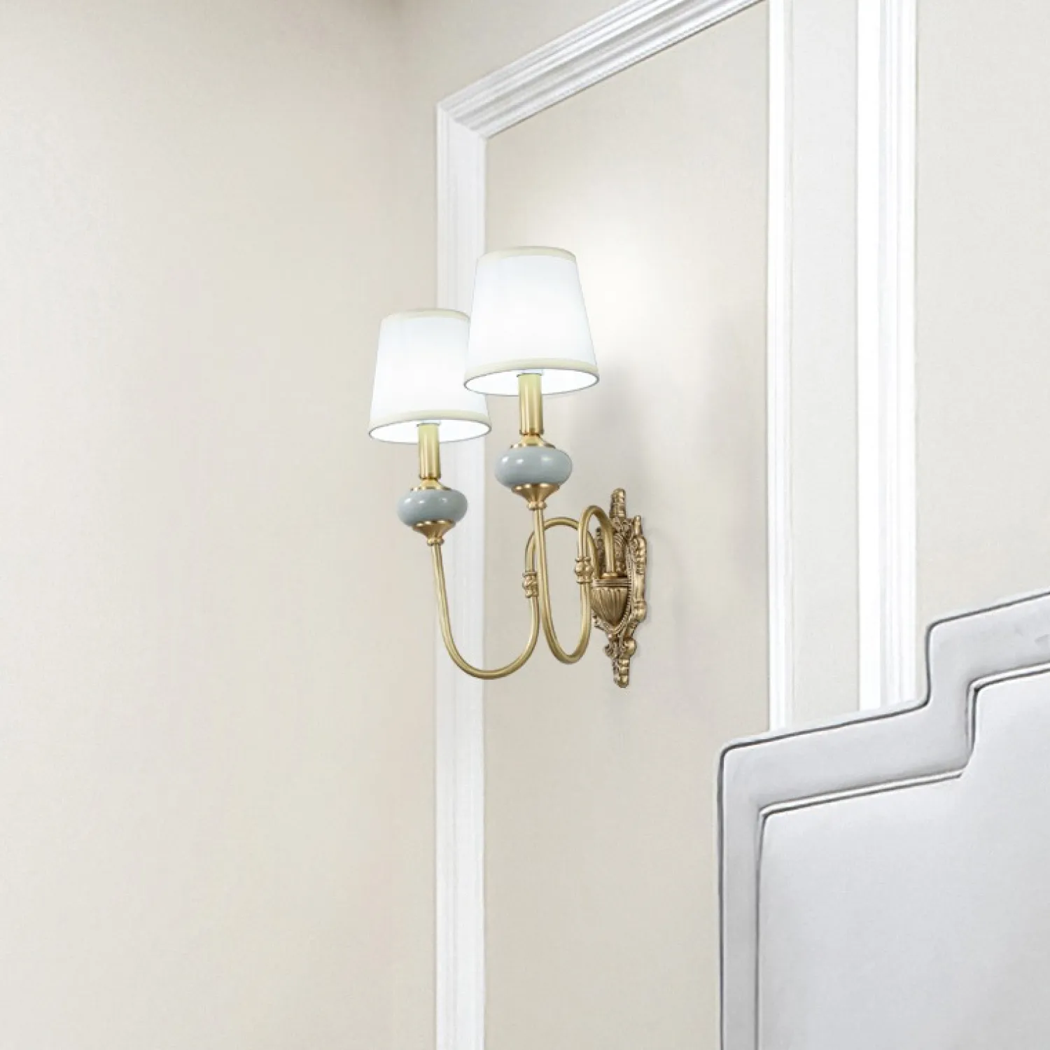 Бра в современном американском стиле с текстильными абажурами ZOE WALL 2 Настенное бра ZOE WALL 2 - это идеальное решение для создания уютной и стильной атмосферы в вашем доме. Это элегантное и функциональное освещение, которое подойдет для любого интерьера.