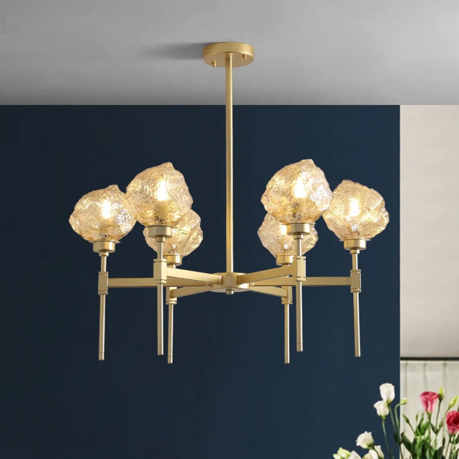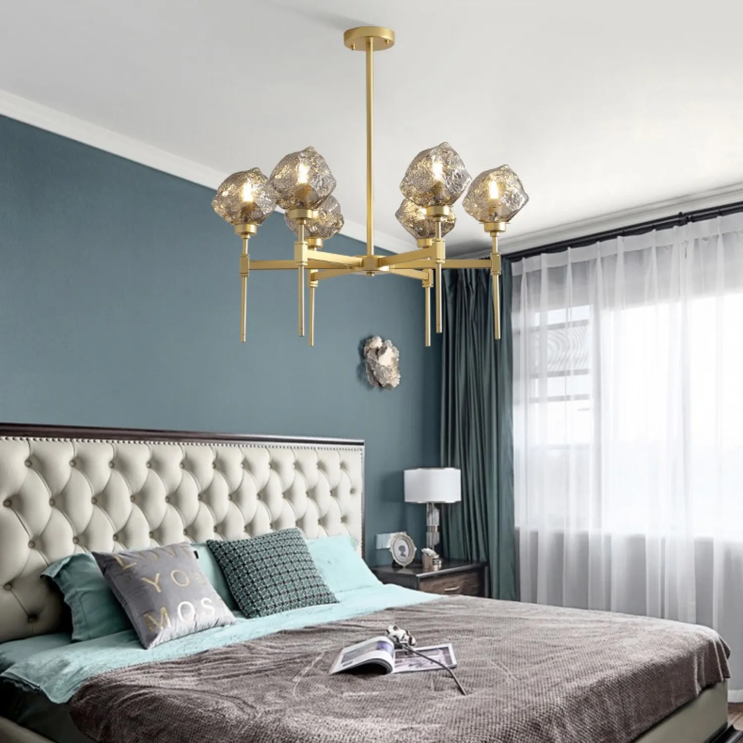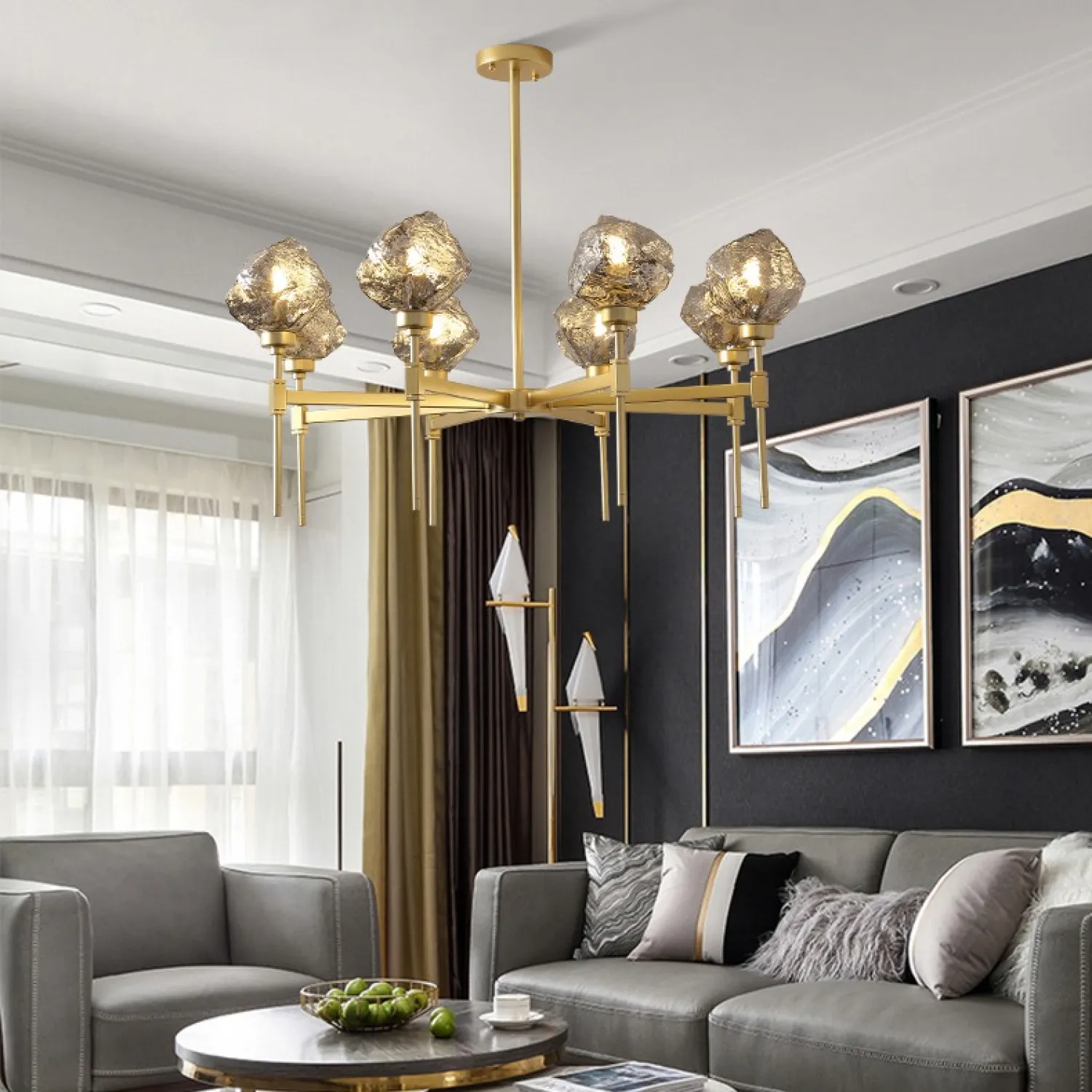 С тремя плафонами, расположенными на разной высоте, эта люстра обеспечивает равномерное и яркое освещение всей комнаты. Она идеально подходит для гостиной, столовой или спальни, добавляя в них шарм и изысканность.