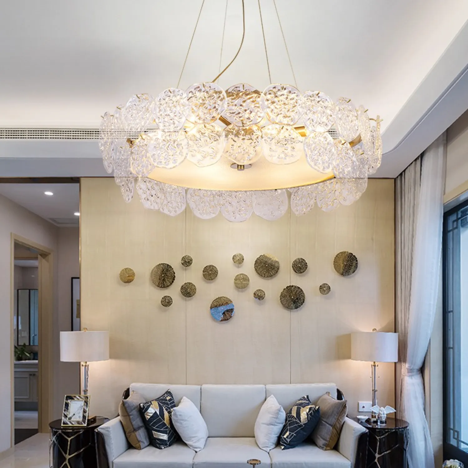 Создайте уют и комфорт в своей гостиной или столовой с помощью этой потрясающей люстры. Ее изящные и изогнутые формы придают ей особую изысканность и привлекательность. Благодаря своему размеру в 60 сантиметров, она идеально подходит для помещений среднего и большого размера.