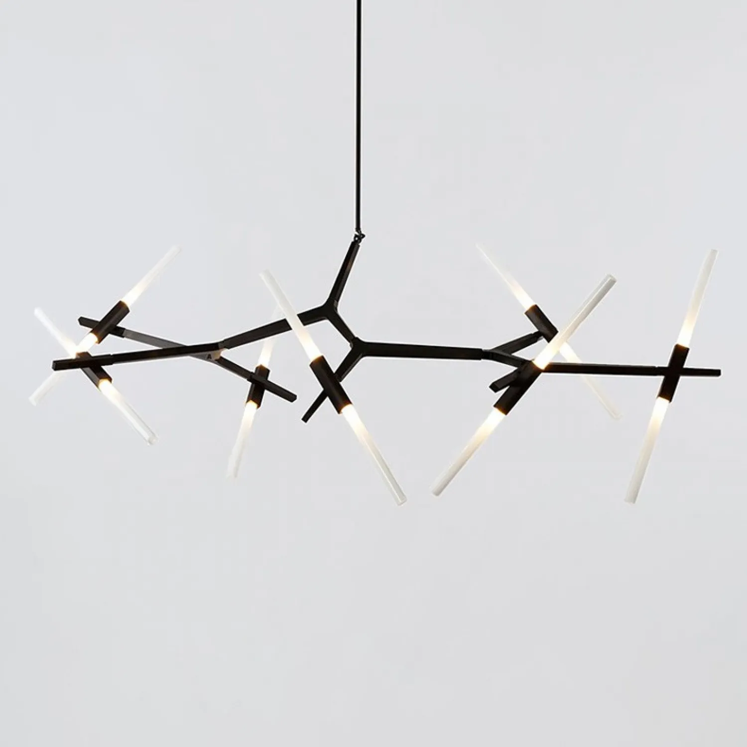 Одна из самых востребованных дизайнерами люстр молекулярной формы, с огромным спектром конфигураций: от 6-х до 20 трубчатых плафонов на каркасе латунного или черного цветов.