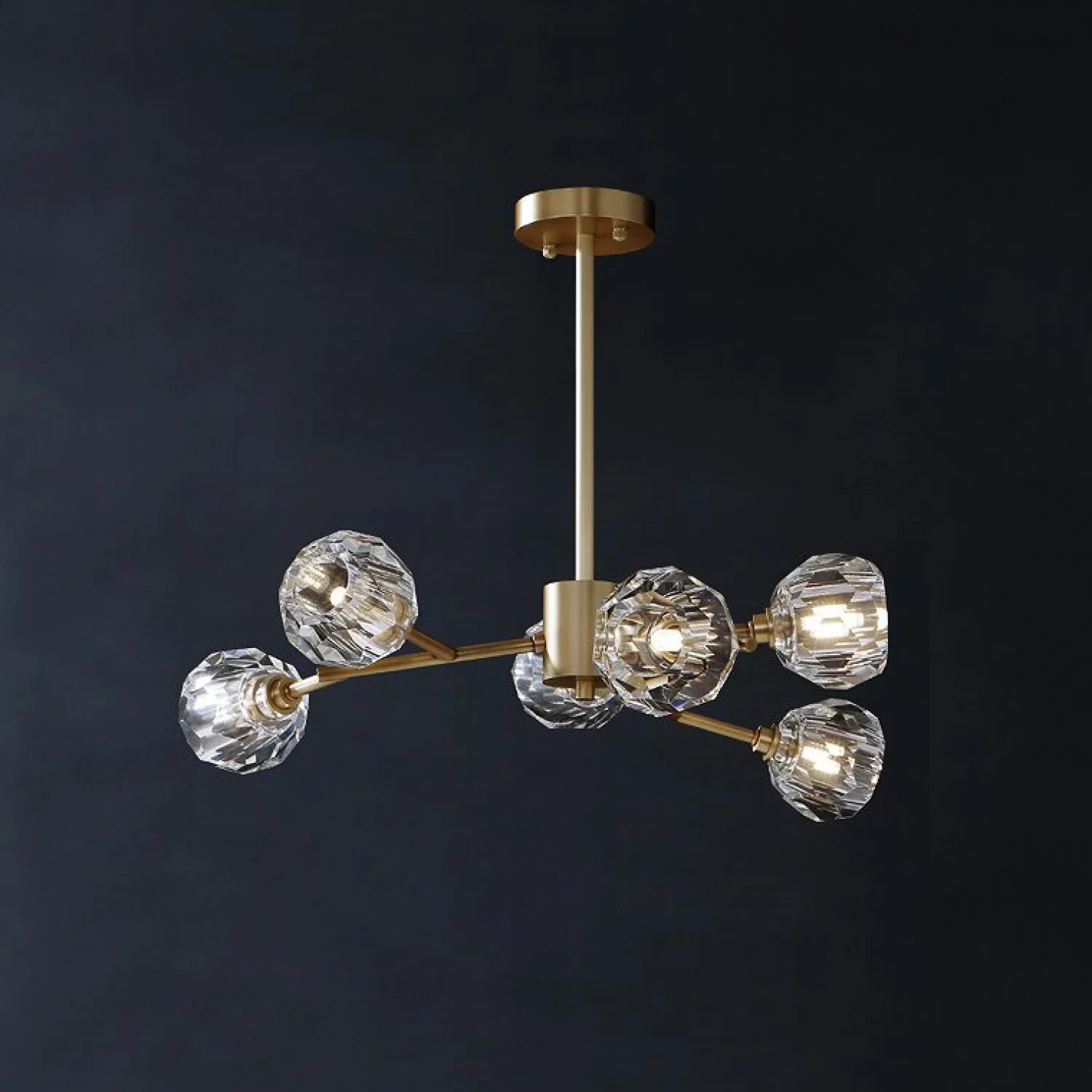 Шесть элегантных плафонов из прозрачного стекла создают прекрасное освещение в комнате, распределяя свет равномерно по всему пространству. Благодаря своей форме и размеру, эта люстра идеально подходит для гостиной, столовой или спальни.