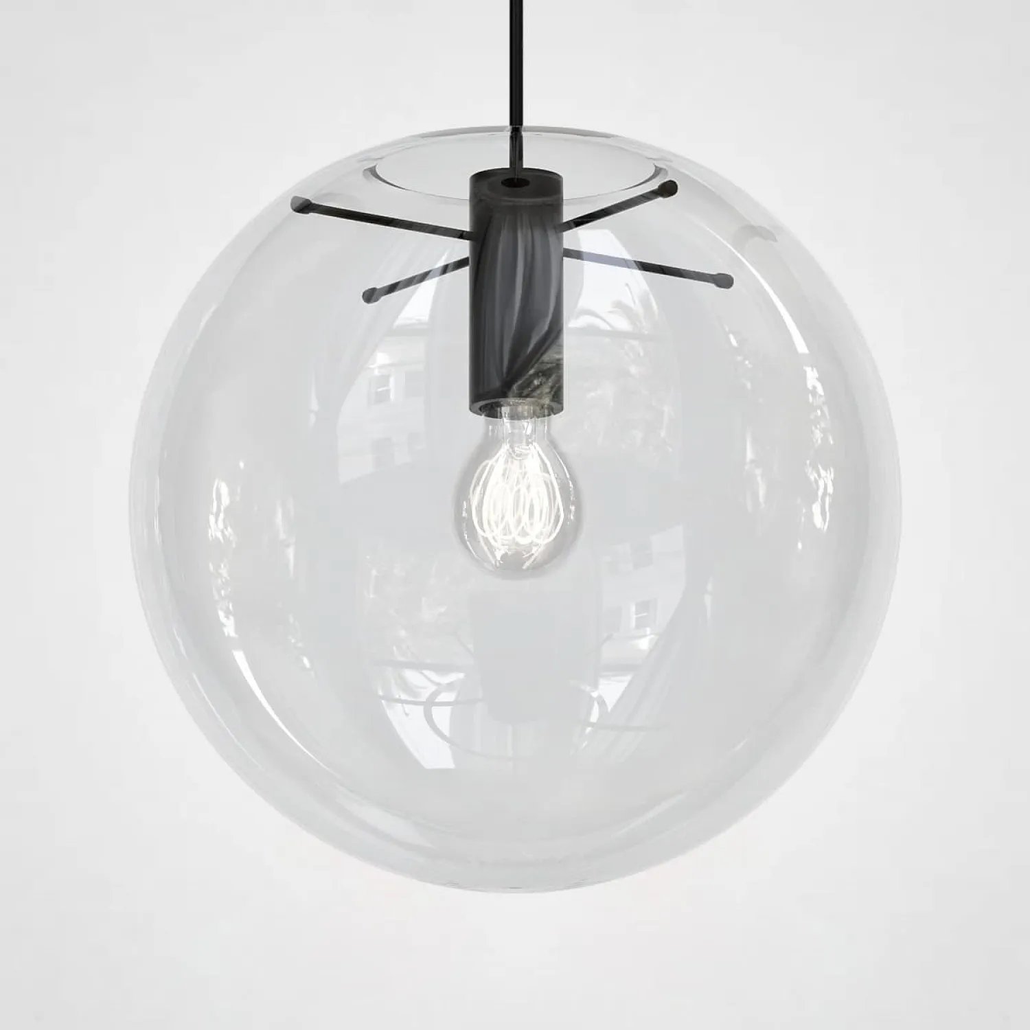 ПОДВЕСНОЙ СВЕТИЛЬНИК SELENE GLASS BALL CEILING LIGHTS D25. Создан гениальным потомственным дизайнером Сандрой Линднер родом из Германии. В основе ее творчества лежит легкость, по возможности, натуральные и естественные формы, сочетание романтизма и простоты. Вся металлическая конструкция и шнур в черном цвете. Плафон в форме правильного шара из прозрачного, чуть-чуть тонированного стекла, причем все детали конструкции удержания шара видны. Подвесной светильник SELENE может быть разных диаметров - от 15 до 35 , с шагом 5 . Есть в этой серии такой же светильник только в другом цвете - можете поотреть чуть ниже.