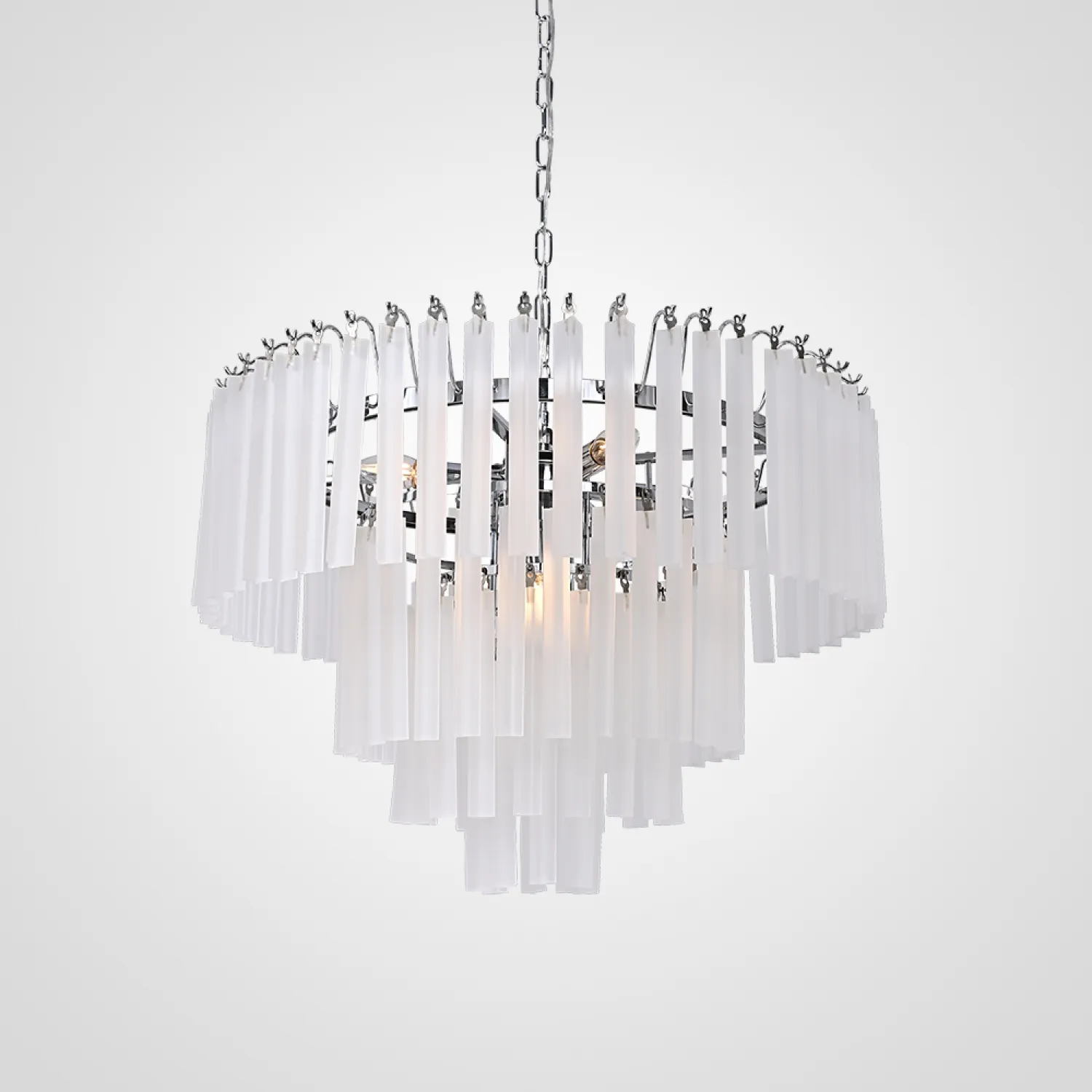 Созданная с использованием высококачественных материалов, эта люстра обладает прочной никелевой отделкой, которая не только придает ей роскошный вид, но и обеспечивает долговечность и стойкость к коррозии.
