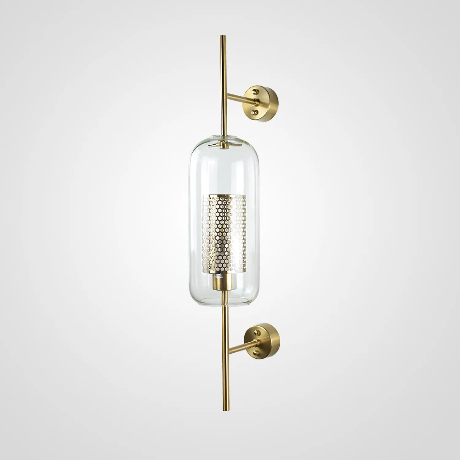 Настенный светильник с комбинированным абажуром из стекла и металлической сетки с ячейками в форме сот. Выпускается 2-х типов: в форме усеченного шара или цилиндра. Каждый тип имеет два размера и отличается цветом внутренней сетки (латунь или сталь). Сочетайте светильники вместе С ПОДВЕСАМИ из этой же серии для создания единого стиля освещения. Цена указана за размер «S». Всю остальную информацию узнавайте у наших менеджеров. Настенный светильник CATCH WALL cylinder L67 brass - это идеальное решение для тех, кто хочет добавить стиль и элегантность в свой интерьер. Этот светильник изготовлен из высококачественной латуни, которая не только придает ему прочность и долговечность, но и создает роскошный внешний вид. Его цилиндрическая форма идеально сочетается с любым дизайном помещения, добавляя в него изысканность и изящество. Светильник CATCH WALL cylinder L67 brass оснащен эффективной LED-технологией, которая обеспечивает яркое и равномерное освещение. Благодаря своей конструкции, он прекрасно подходит для использования в различных помещениях, включая гостиную, спальню, кабинет или даже коридор. Установка светильника CATCH WALL cylinder L67 brass очень проста и не требует специальных навыков или инструментов. Он легко крепится к стене и может быть направлен в нужном направлении, чтобы создать идеальное освещение для вашего пространства. Не упустите возможность приобрести настенный светильник CATCH WALL cylinder L67 brass и добавить шик и элегантность в свой дом. Позвольте ему стать яркой деталью вашего интерьера и создать уютную атмосферу в любом помещении.