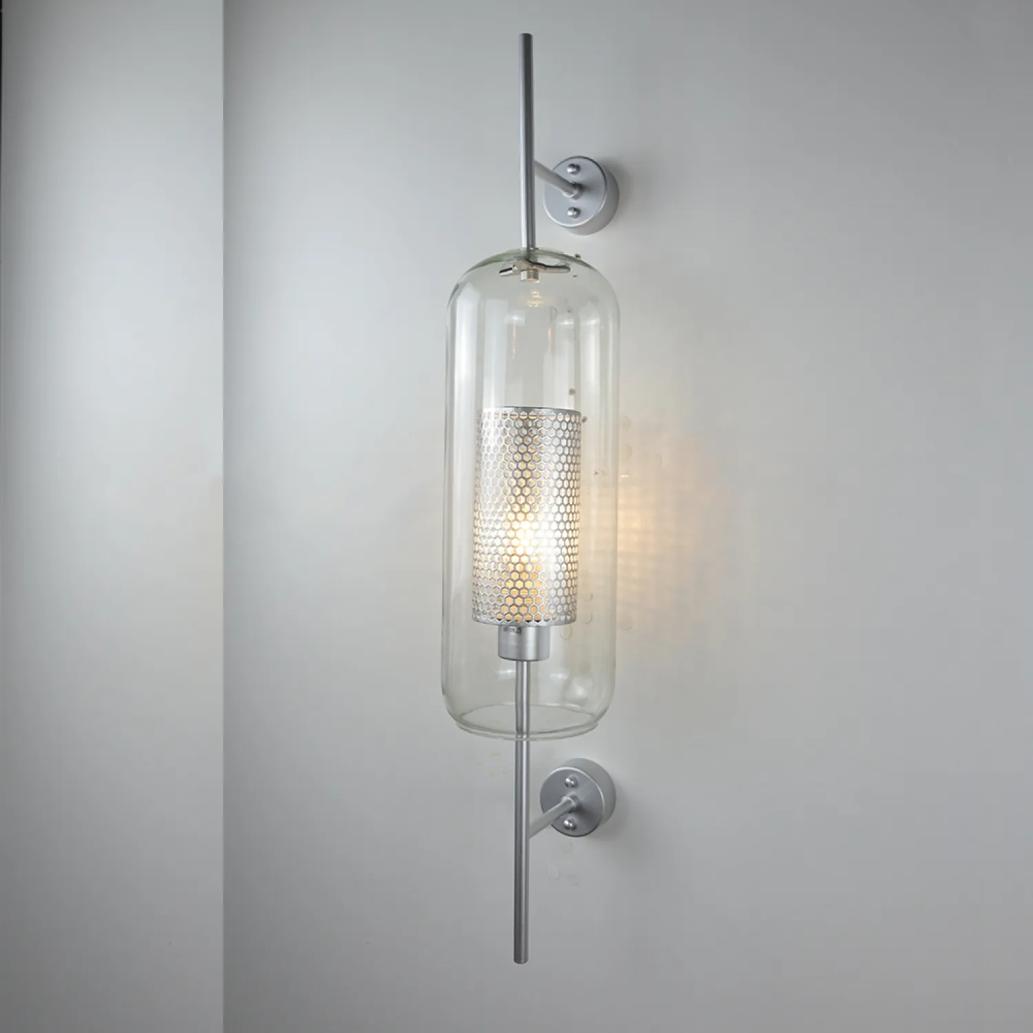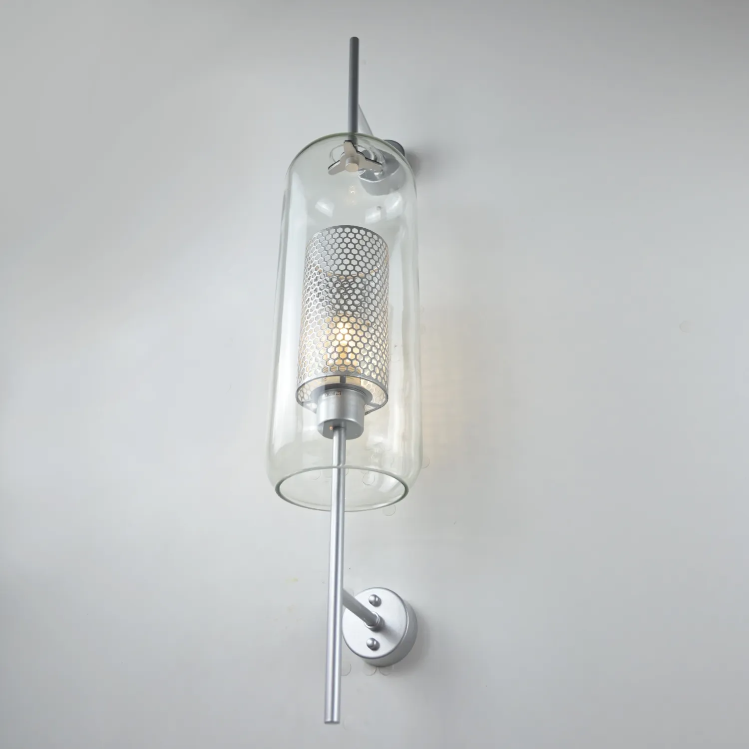 Настенный светильник с комбинированным абажуром из стекла и металлической сетки с ячейками в форме сот. Выпускается 2-х типов: в форме усеченного шара или цилиндра. Каждый тип имеет два размера и отличается цветом внутренней сетки (латунь или сталь). Сочетайте светильники вместе С ПОДВЕСАМИ из этой же серии для создания единого стиля освещения. Цена указана за размер «L». Всю остальную информацию узнавайте у наших менеджеров. Хотите добавить немного стиля и элегантности в свой дом? Тогда настенный светильник CATCH WALL cylinder L78 stell - идеальный выбор для вас! Этот светильник не только обеспечит яркое и приятное освещение, но и станет настоящим украшением вашего интерьера. Его стильный дизайн с цилиндрической формой и стальным оттенком добавит нотку современности и изыска в любое помещение. Настенный светильник CATCH WALL cylinder L78 stell идеально подходит для освещения гостиной, спальни, кабинета или прихожей. Благодаря своей компактной конструкции, он не займет много места и легко устанавливается на любую стену. Кроме того, этот светильник оснащен современной LED-технологией, которая обеспечивает яркое и энергоэффективное освещение. Вы сможете наслаждаться красивым светом, не беспокоясь о высоких счетах за электричество. Не упустите возможность придать вашему дому особый шарм с помощью настенного светильника CATCH WALL cylinder L78 stell. Закажите его прямо сейчас и наслаждайтесь красотой и функциональностью этого превосходного изделия!