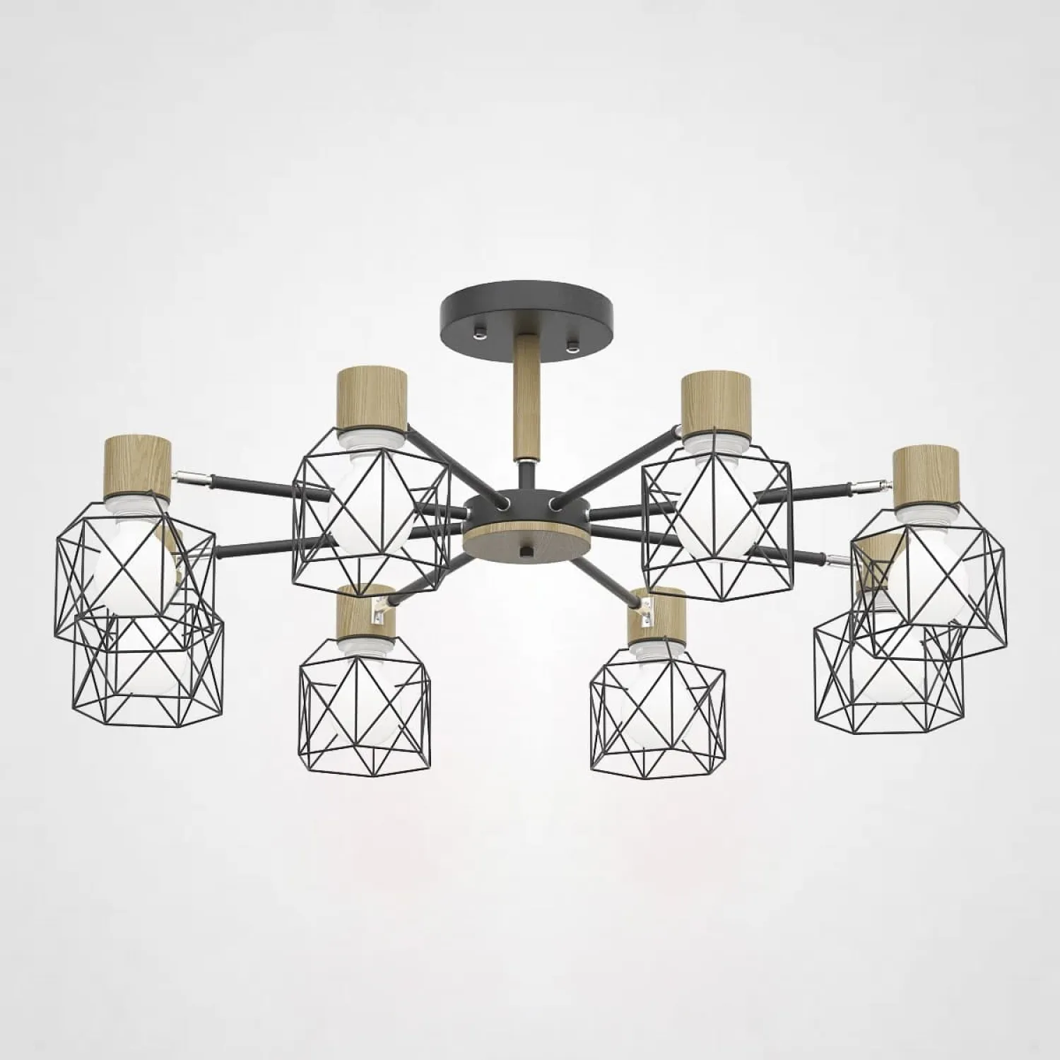 Люстра в скандинавском стиле с подвижными плафонами на 3, 5, 6 или 8 источников света. Деревянные детали и геометричные плафоны — узнаваемый и необычный оттенок скандинавского стиля. Хотите превратить вашу комнату в элегантное пространство, наполненное изысканностью и стилем? Тогда потолочная люстра CORF B3 Black 8 lamps - идеальное решение для вас! Эта потрясающая люстра не только осветит вашу комнату ярким и приятным светом, но и станет настоящим украшением вашего интерьера. Ее элегантный черный цвет и изысканный дизайн привнесут нотку роскоши и утонченности в любое помещение. С восемью лампами, расположенными на различных уровнях, эта люстра обеспечивает максимальное освещение в комнате, создавая приятную и уютную атмосферу. Вы сможете наслаждаться ярким и равномерным светом в любое время дня. Кроме того, потолочная люстра CORF B3 Black 8 lamps очень проста в установке и использовании. Она оснащена удобным выключателем, который позволяет легко регулировать яркость света в зависимости от ваших потребностей. Не упустите возможность придать вашему интерьеру шикарный вид с помощью потолочной люстры CORF B3 Black 8 lamps. Сделайте свое пространство стильным и элегантным, и получите восхищенные взгляды гостей!