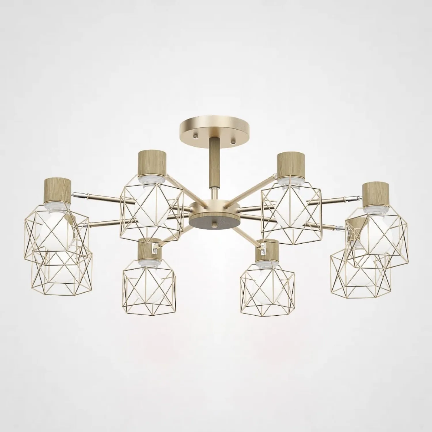 Люстра в скандинавском стиле с подвижными плафонами на 3, 5, 6 или 8 источников света. Деревянные детали и геометричные плафоны — узнаваемый и необычный оттенок скандинавского стиля. Потолочная люстра CORF B3 Champagne 8 lamps - это элегантное и стильное освещение, которое добавит изысканности и роскоши в ваш интерьер. Сочетание шампанского цвета и восьми ламп создает потрясающий эффект света и тени, придавая комнате уют и атмосферу роскоши. Эта потолочная люстра идеально подойдет для гостиной, столовой или спальни, добавляя в вашу комнату неповторимый шарм. Кроме своего прекрасного дизайна, эта люстра также обладает высоким качеством и долговечностью. Изготовлена из прочных материалов, она прослужит вам долгие годы, радуя вас своим ярким светом и стильным видом. Не упустите возможность приобрести потолочную люстру CORF B3 Champagne 8 lamps и создать в своем доме атмосферу роскоши и изыска!