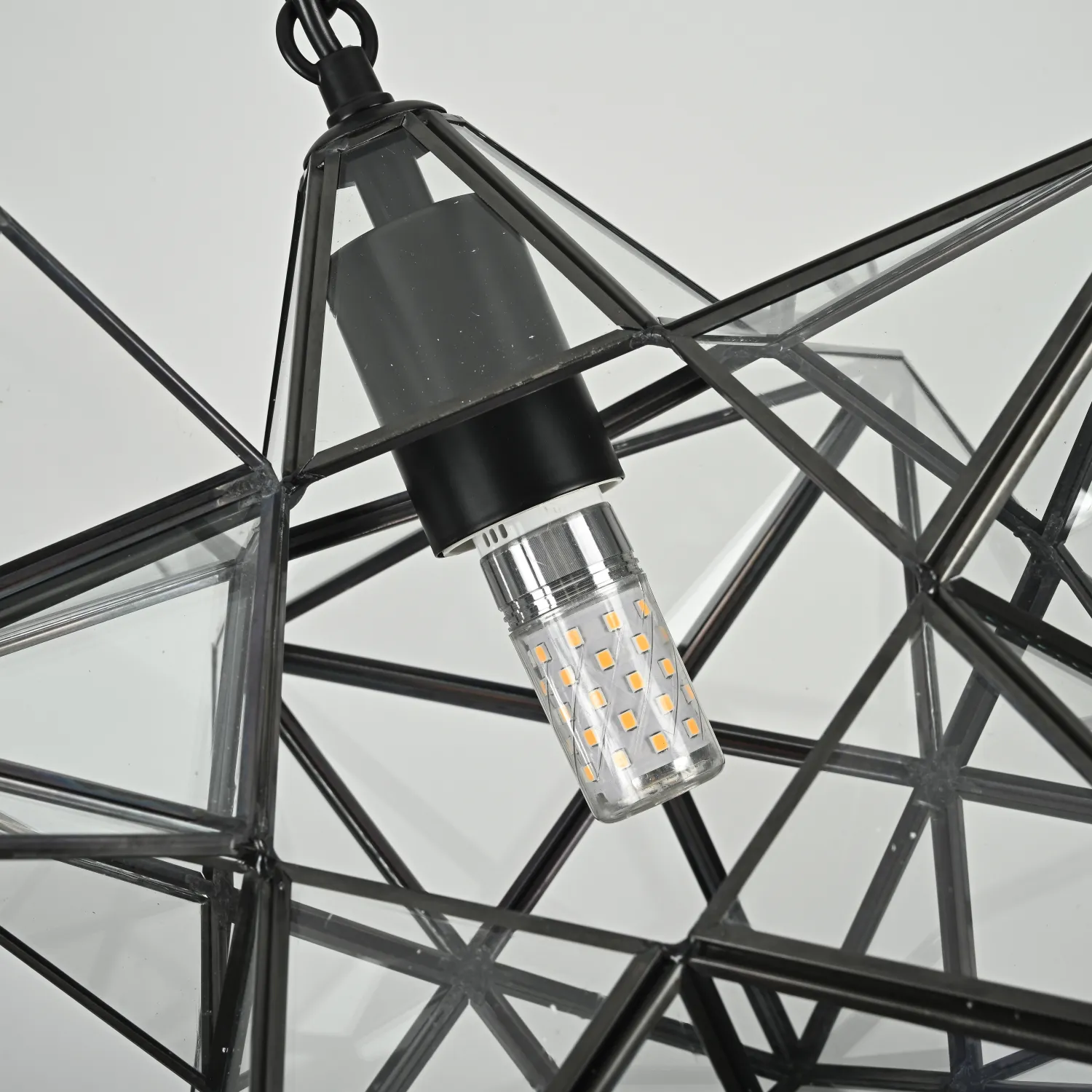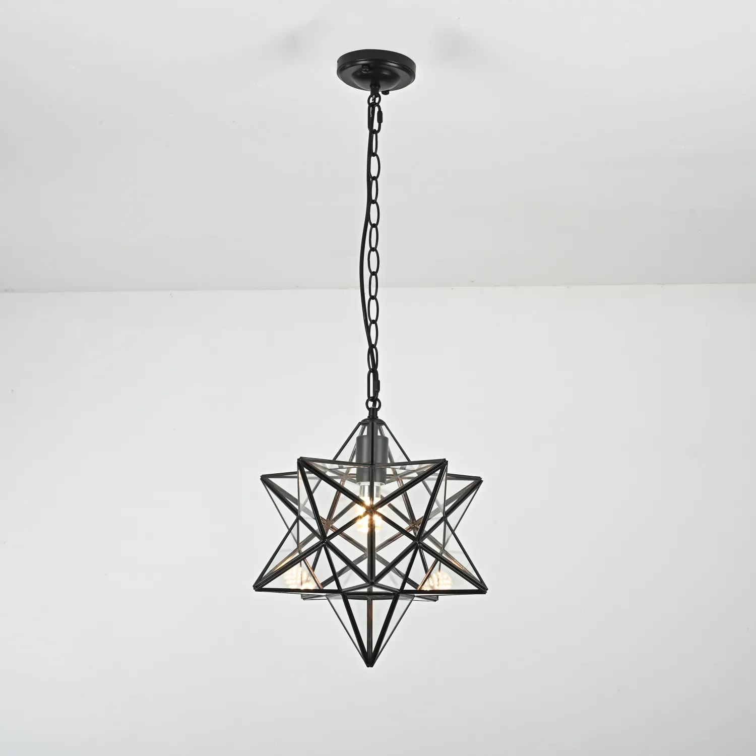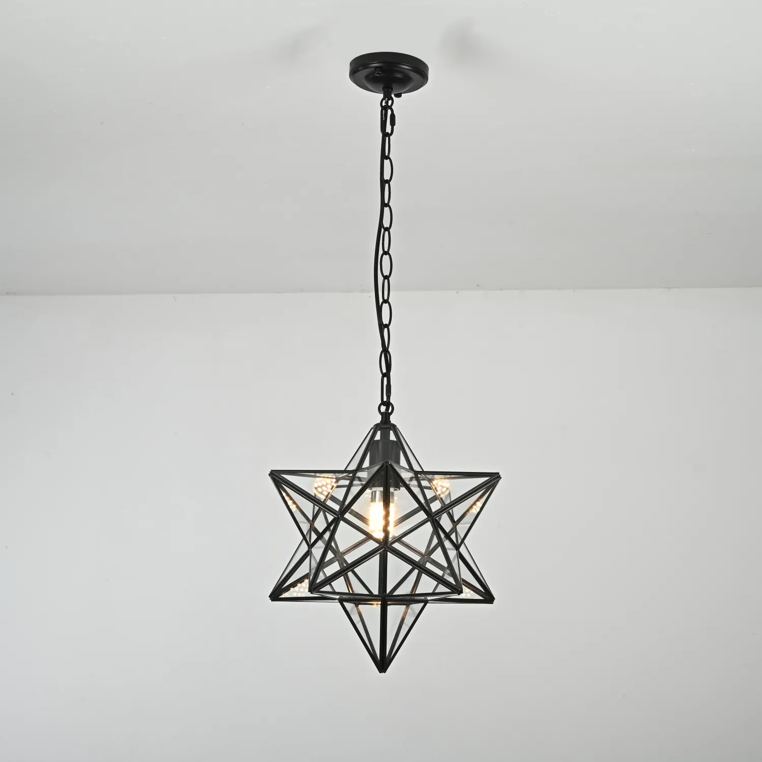 Крупный подвесной светильник на цепном подвесе в духе американского индастриала. Несмотря на свою жесткую геометрическую форму, в интерьере выглядит достаточно уютно, создавая интересную игру светотеней на потолке и стенах. Представлены живые фото из нашего шоурума, а также видеообзор на данную модель можно посмотреть во вкладке "Видео". <div> </div> Хотите добавить элегантности и изысканности в свой интерьер? Тогда люстра Black Star Clear Glass 35 см - идеальное решение для вас! Эта потрясающая люстра сочетает в себе современный дизайн и высокое качество исполнения. Она изготовлена из прочного стекла и металла, что обеспечивает долговечность и надежность. Стильный черный цвет и прозрачное стекло создают уникальную комбинацию, которая придает вашему помещению роскошный и изысканный вид. Благодаря своему компактному размеру диаметром 35 см, люстра легко впишется в любую комнату, будь то гостиная, спальня или кухня. Люстра Black Star Clear Glass 35 см обладает ярким и мощным освещением, которое создает комфортную и уютную атмосферу. Вы сможете наслаждаться ярким светом в течение долгого времени благодаря использованию энергосберегающих ламп. Не упустите возможность приобрести эту великолепную люстру по привлекательной цене! Она станет настоящим украшением вашего интерьера и привлечет восхищенные взгляды гостей. Закажите люстру Black Star Clear Glass 35 см прямо сейчас и ощутите весь ее шарм и красоту!