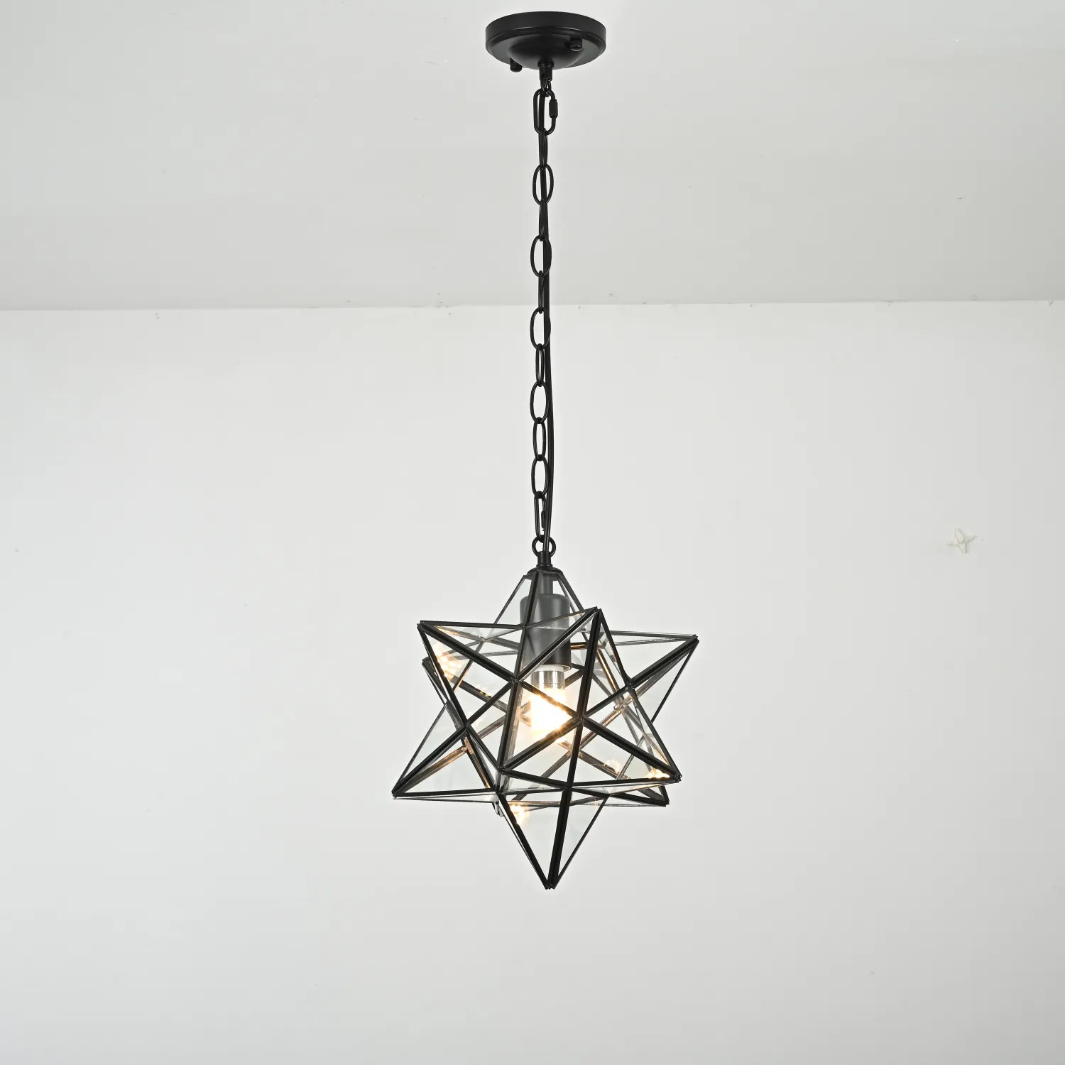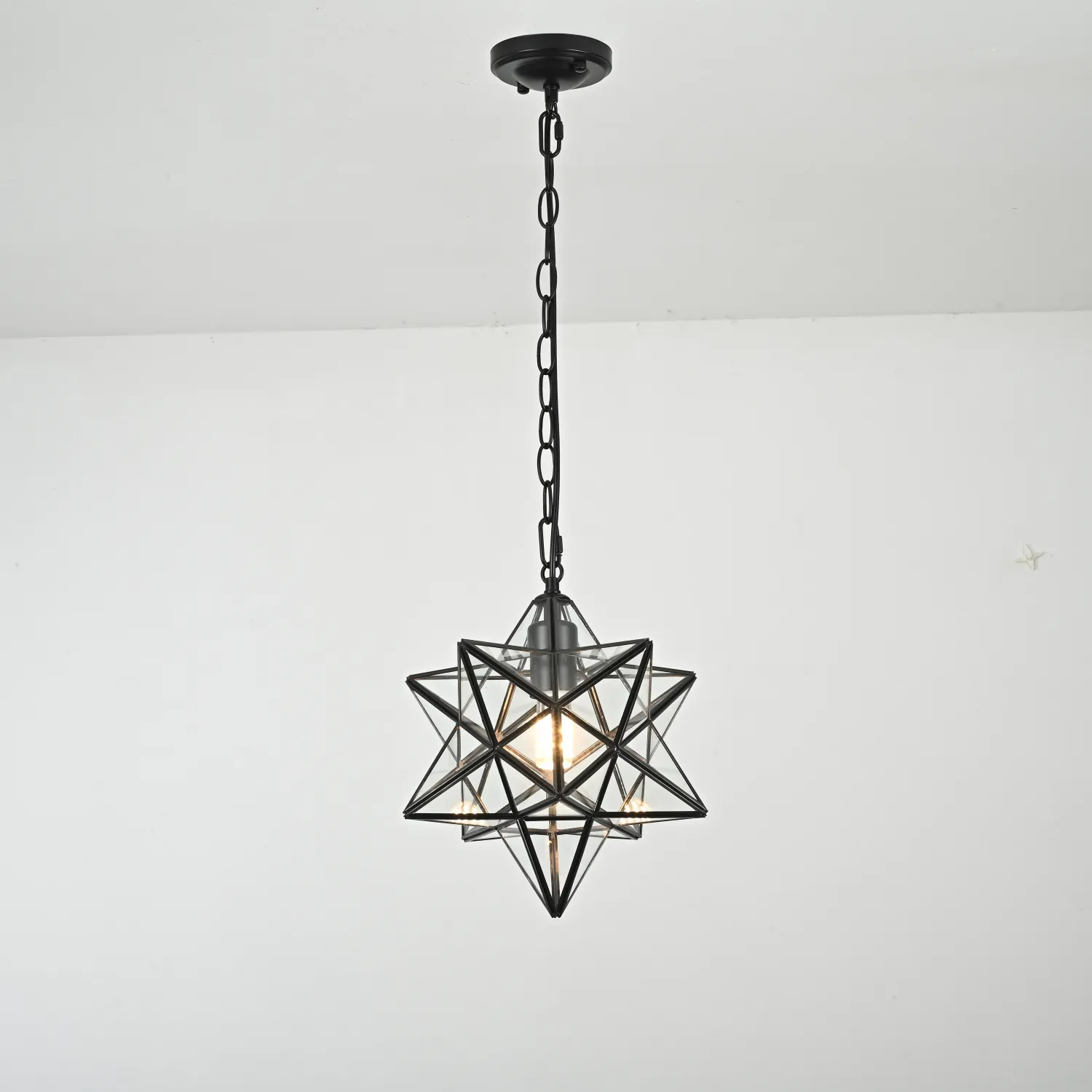 Крупный подвесной светильник на цепном подвесе в духе американского индастриала. Несмотря на свою жесткую геометрическую форму, в интерьере выглядит достаточно уютно, создавая интересную игру светотеней на потолке и стенах. Представлены живые фото из нашего шоурума, а также видеообзор на данную модель можно посмотреть во вкладке "Видео". <div> </div> Люстра Black Star Clear Glass 30 см - это идеальное решение для тех, кто хочет добавить элегантности и стиля в свой дом. Сочетание черного металла и прозрачного стекла создает потрясающий контраст, который привлечет внимание каждого. Стильный дизайн с множеством подвесок из стекла делает эту люстру настоящим произведением искусства. Светильник оснащен 30 см диаметром, что позволяет ему идеально вписаться в любое помещение. Он прекрасно подойдет для гостиной, спальни или даже офиса. Кроме своего привлекательного внешнего вида, люстра также обладает высокой функциональностью. Она оснащена несколькими лампочками, которые обеспечивают яркий и равномерный свет в комнате. Вы сможете создать уютную атмосферу и подчеркнуть стиль вашего интерьера. Люстра Black Star Clear Glass 30 см - это идеальное решение для тех, кто ищет сочетание красоты, функциональности и стиля. Приобретайте ее сегодня и превратите свое пространство в настоящий шедевр.