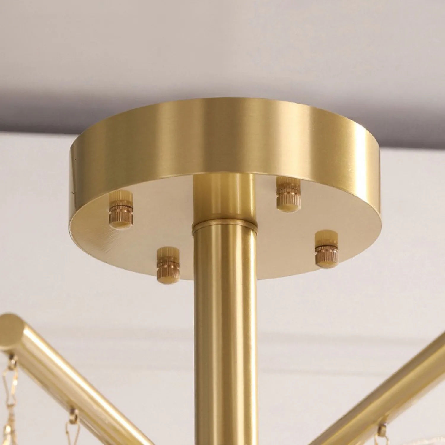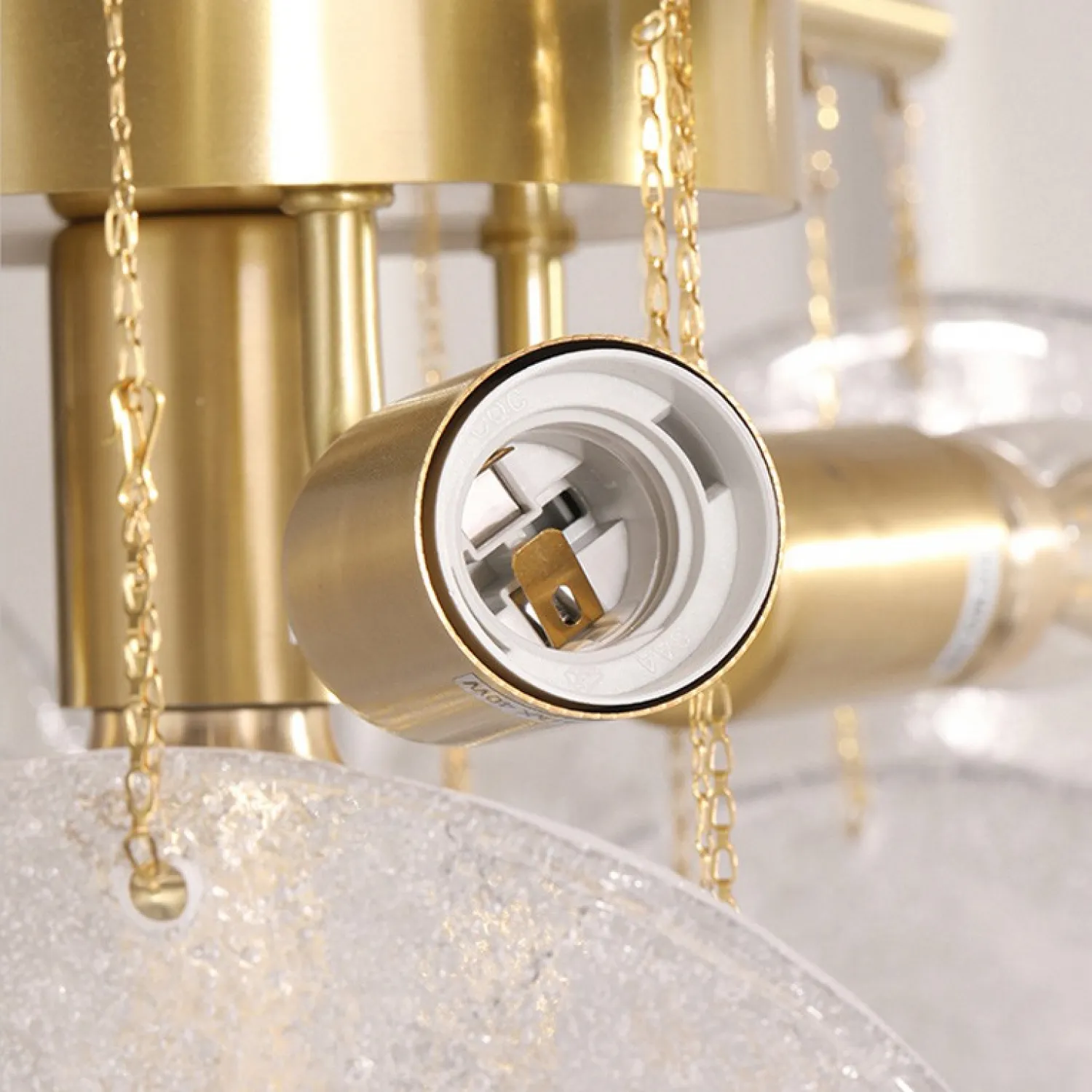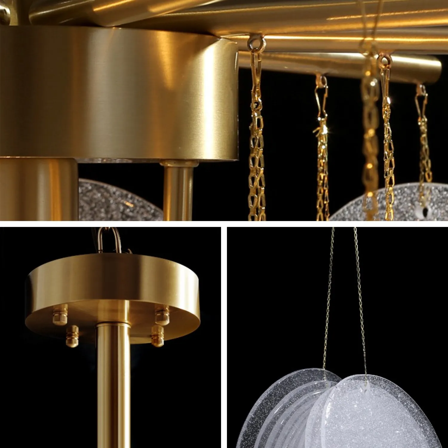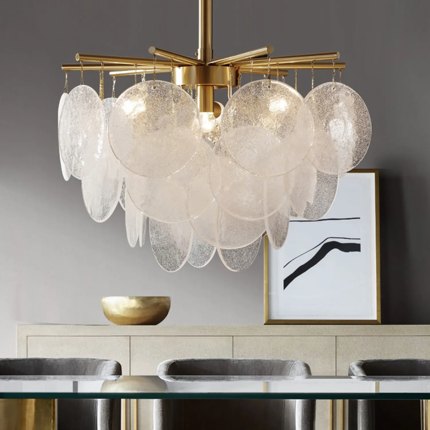 Люстра с пластинчатыми стеклянными канделябрами с фактурой «иней» на лучевой конструкции. Высокое качество сборки, латунный каркас и, конечно, внешний вид — достойны даже самого притязательного интерьера!