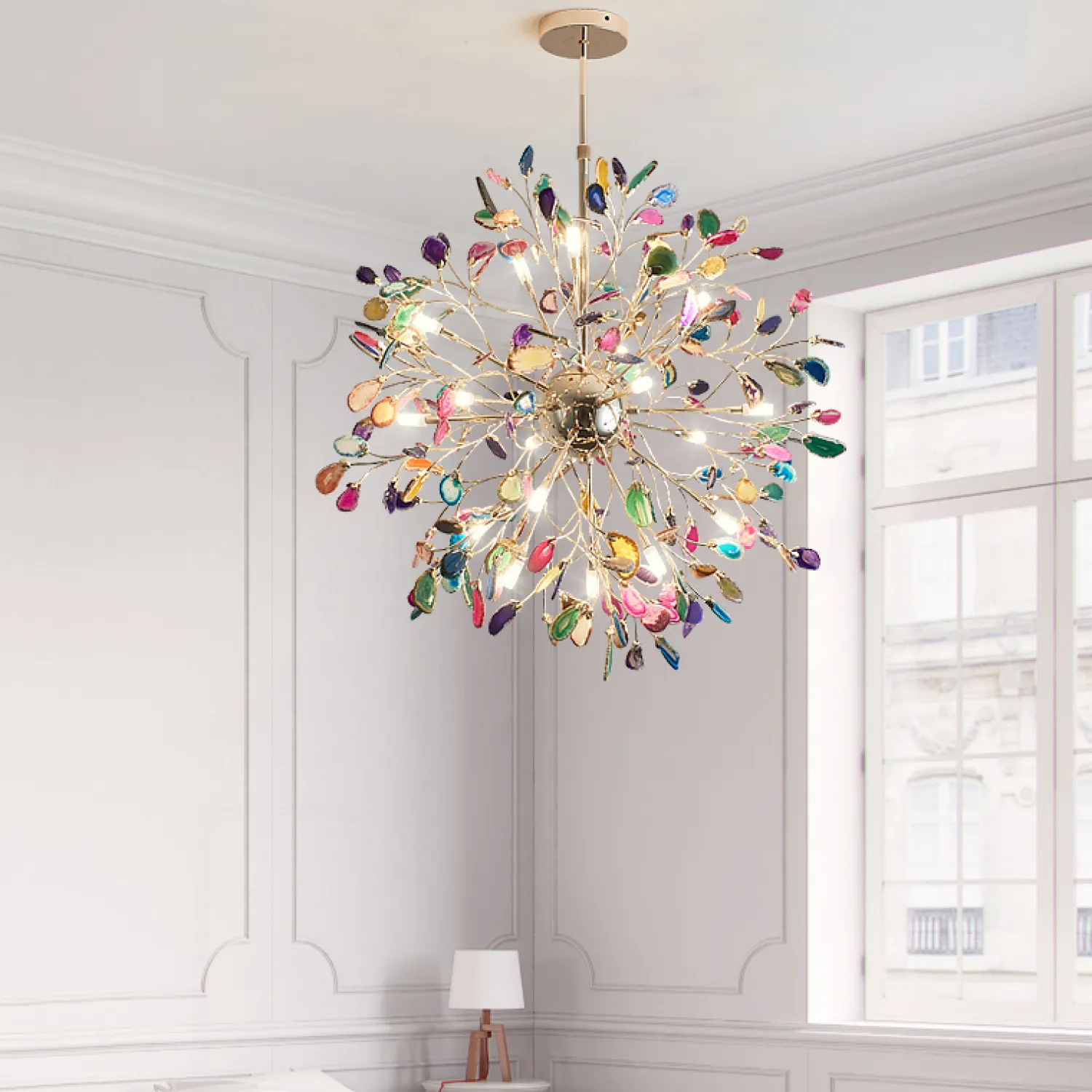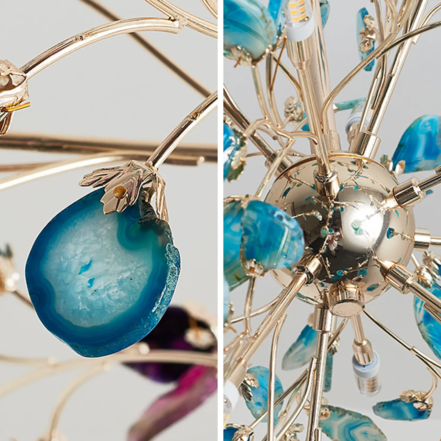 Этот потрясающий светильник имеет 8 прекрасно оформленных плафонов, которые создают уникальные игры света и тени. Они выполнены в красивом голубом оттенке, который придает вашему интерьеру особую нотку изысканности и изящества.