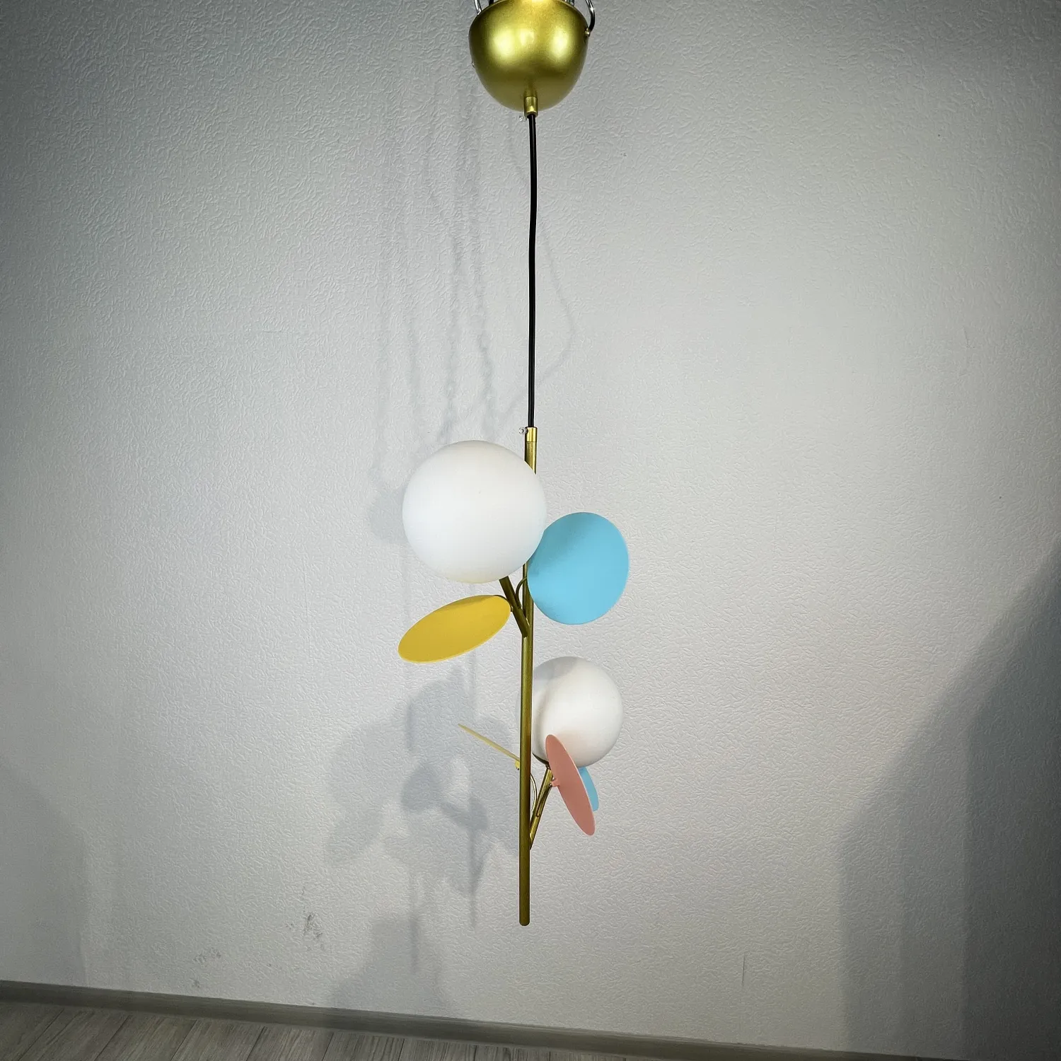 Сочетание разноцветных стеклянных плафонов создает удивительную игру света и тени, что придает комнате особую атмосферу. Вы сможете выбрать цвета плафонов в соответствии с вашими предпочтениями и стилем интерьера.
