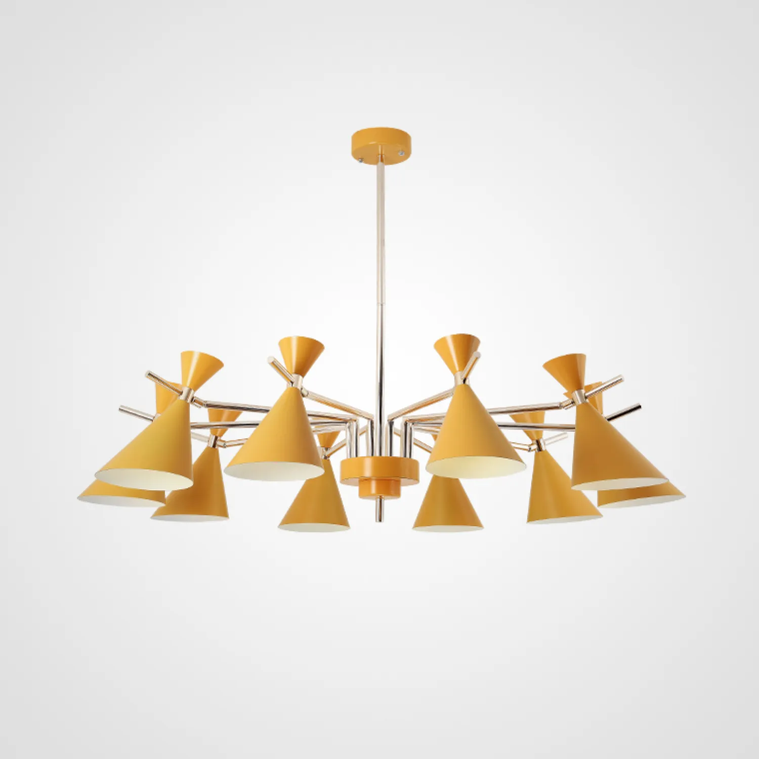 Сочетание яркого желтого цвета и изящного дизайна делает эту люстру поистине уникальной. Она привнесет в ваш дом неповторимую атмосферу радости и тепла. Каждая из десяти ламп создает потрясающий световой эффект, наполняя комнату яркими лучами света.