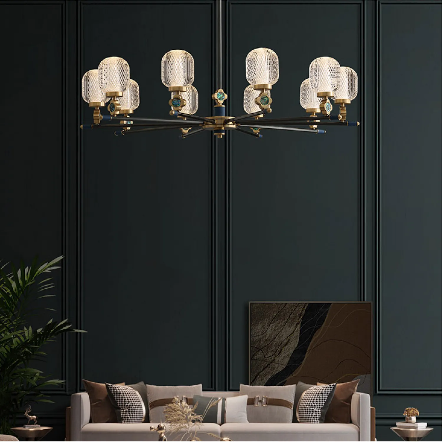 Эта потолочная люстра идеально подходит для гостиной, столовой или спальни, создавая атмосферу уюта и комфорта. Она прекрасно сочетается с различными стилями интерьера - от классического до современного.