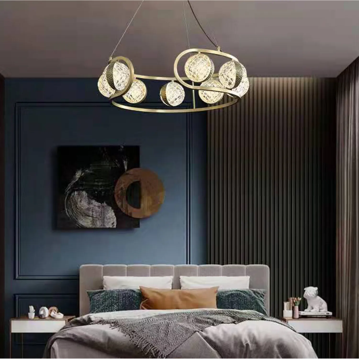 Люстра легко устанавливается и подключается к существующей электросети. Она совместима с лампами накаливания или светодиодными лампами с цоколем Е27, что позволяет вам выбрать источник света, подходящий именно вам.
