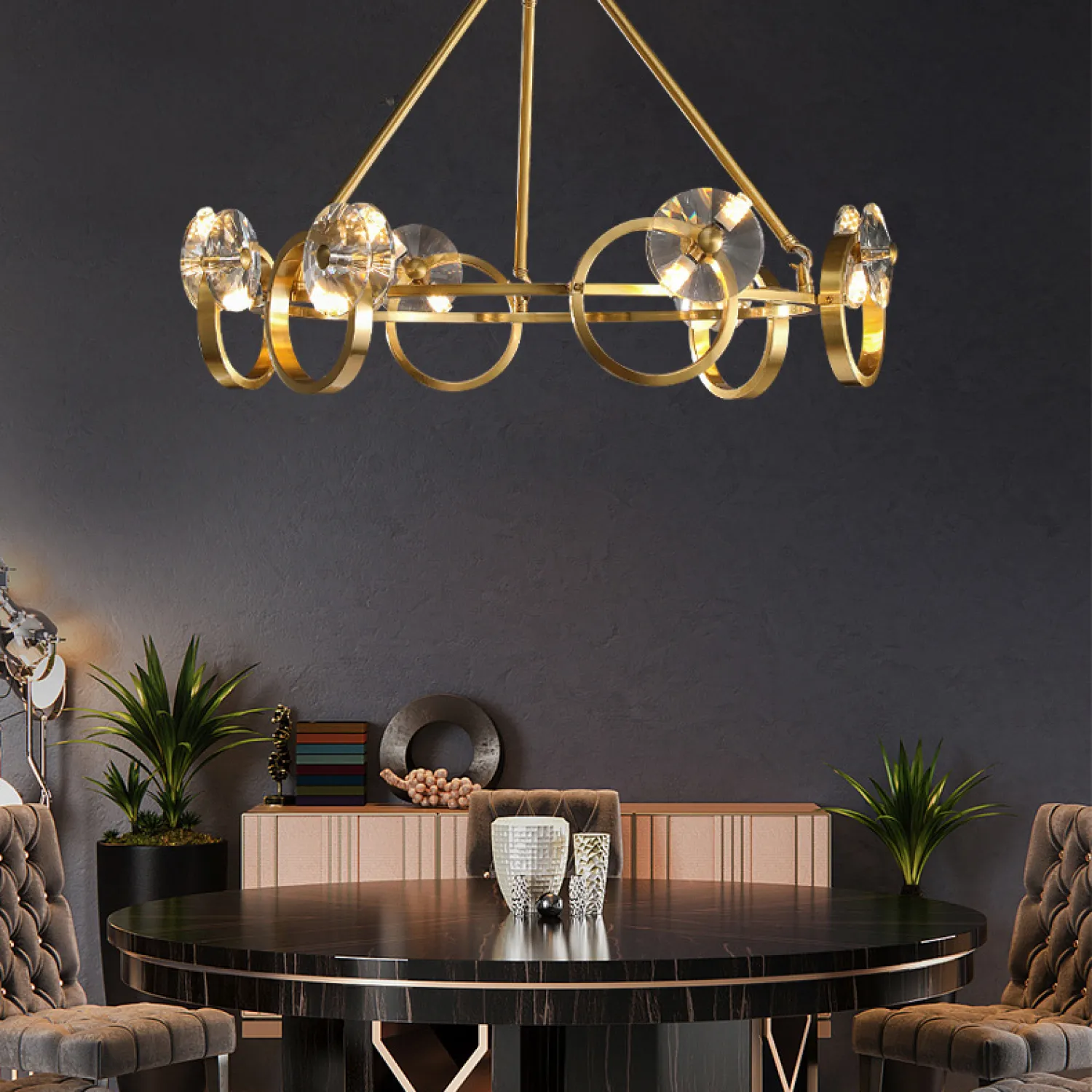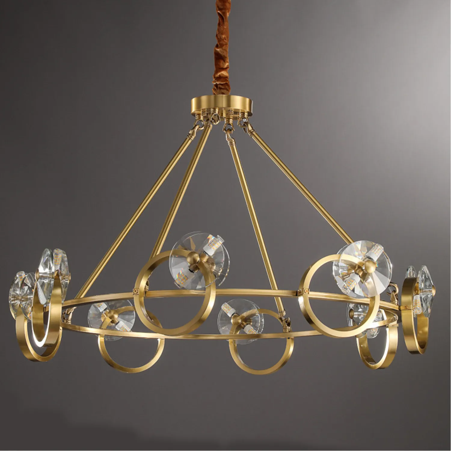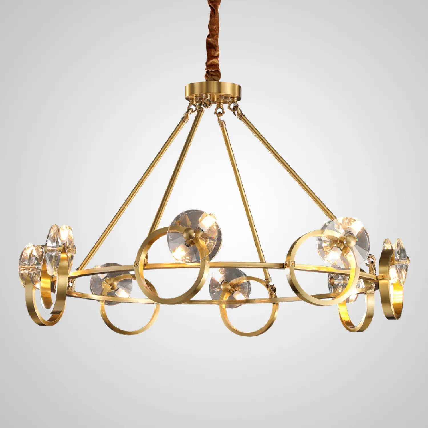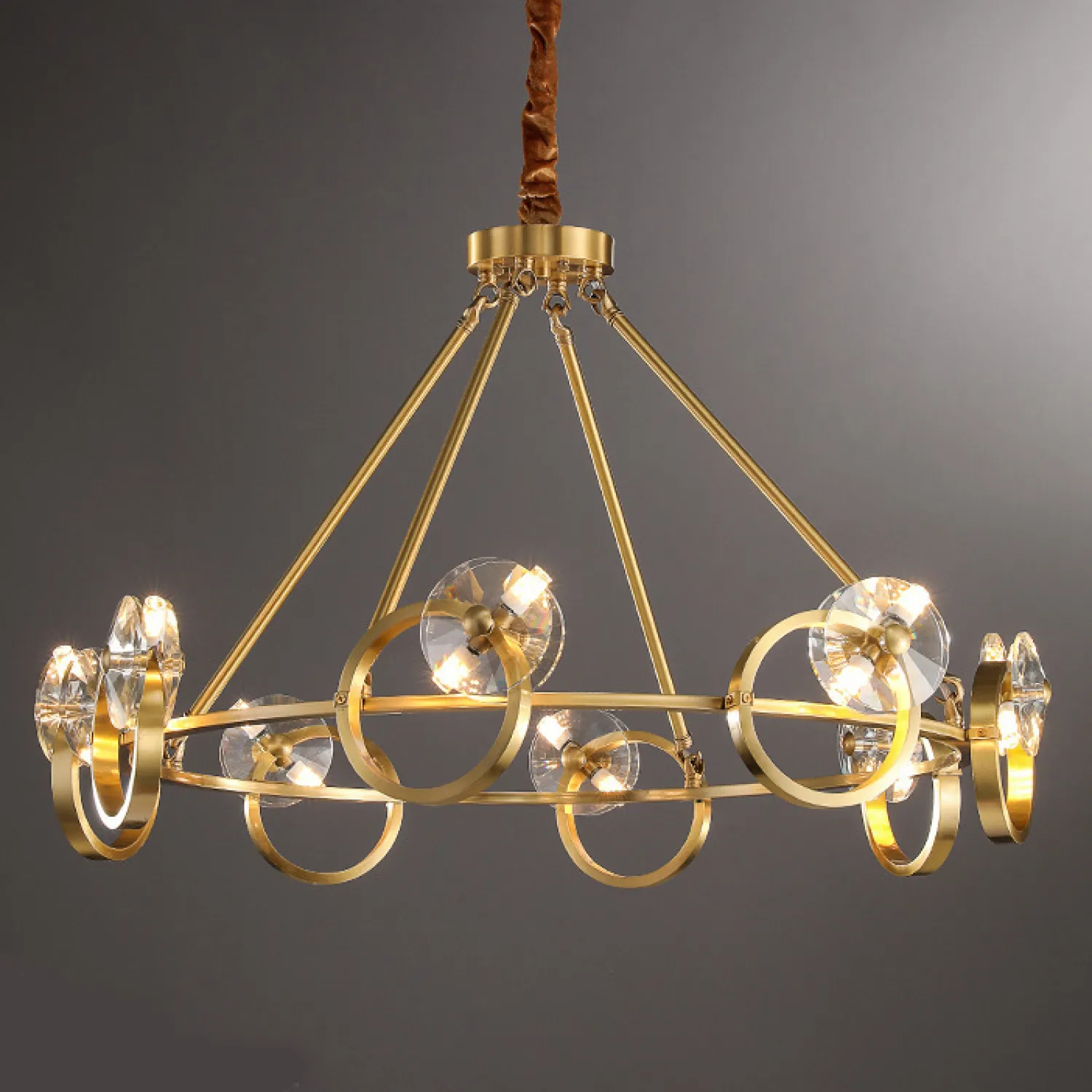 Изготовленная из металла высокого качества, эта люстра обеспечивает надежность и долговечность. Хрустальные подвески добавляют изысканности и создают игру света, которая превращает вашу комнату в настоящий дворец.