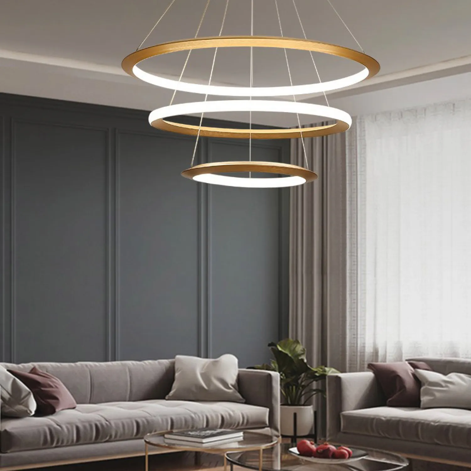 Изготовлена люстра из прочного металла с покрытием под дерево, что придает ей особый шарм. Она оснащена качественными светодиодными лампами, которые обеспечивают яркое и равномерное освещение. Кроме того, эта модель поддерживает возможность регулировки яркости и цветовой температуры.