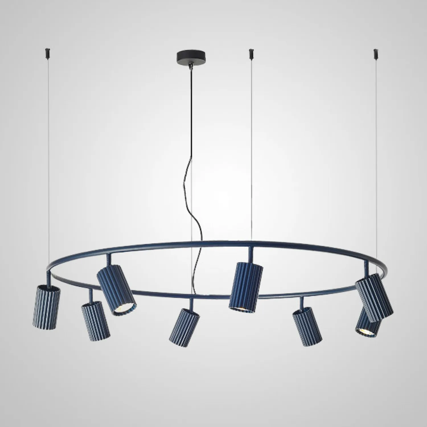Люстра MAISY D60 Blue имеет диаметр 60 см, что позволяет равномерно осветить большую площадь. Она оснащена качественными и яркими лампочками, которые создают приятный и комфортный свет. Благодаря регулируемой высоте подвеса, вы сможете легко настроить ее под свои потребности.