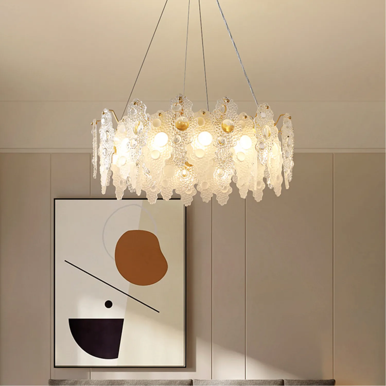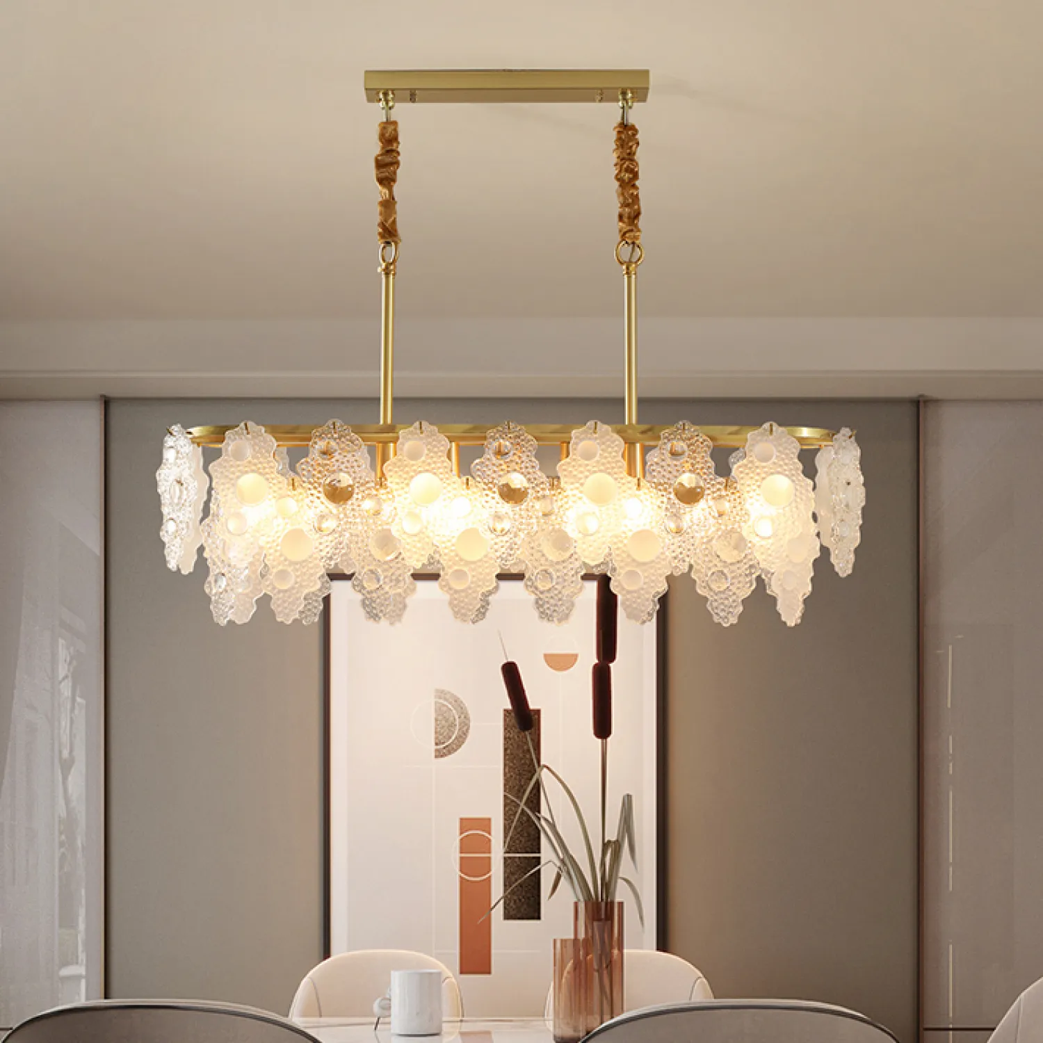 Создайте впечатляющую атмосферу в вашей гостиной, столовой или спальне с помощью этой потрясающей подвесной люстры. Ее изящные и изогнутые линии придают интерьеру неповторимый шарм и привлекательность.