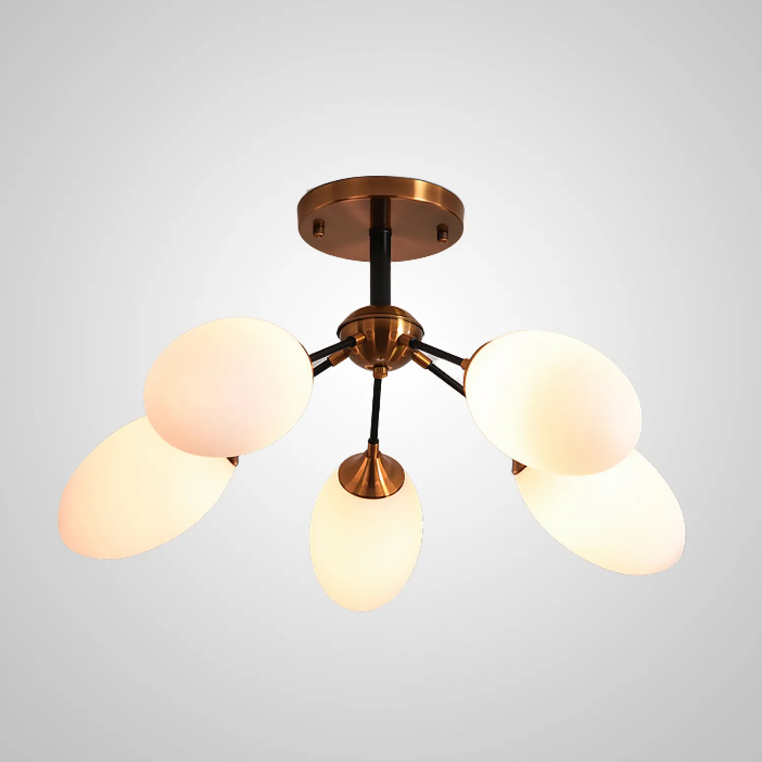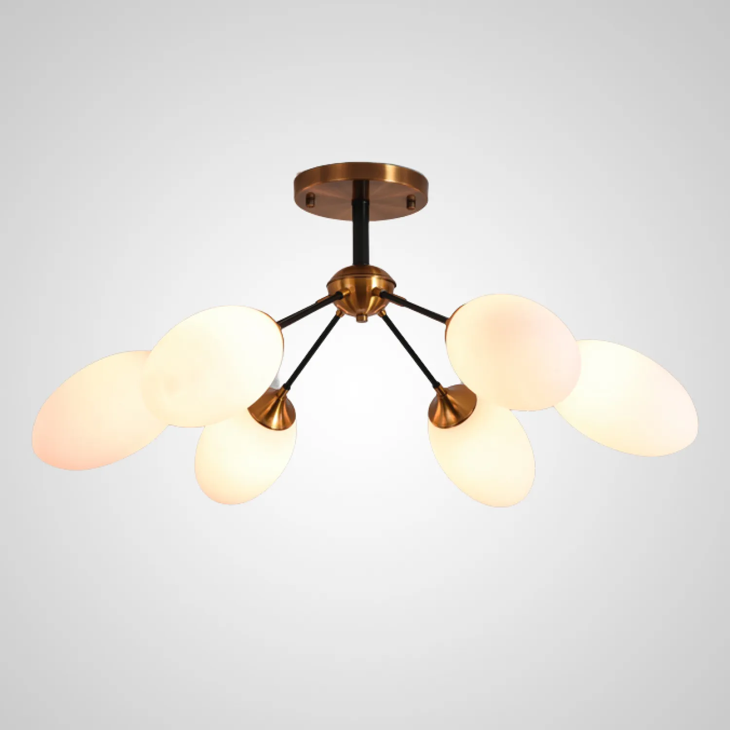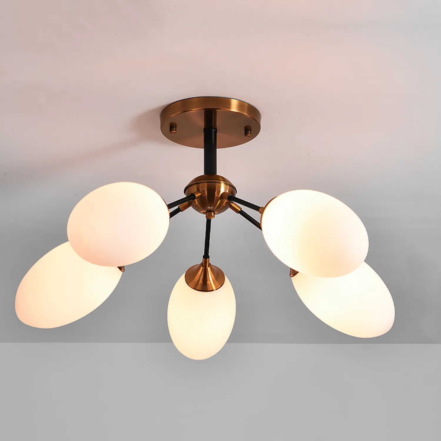 Эта потолочная люстра имеет пять плафонов, выполненных из прозрачного стекла, которое прекрасно рассеивает свет, создавая мягкую и равномерную подсветку. Благодаря своей конструкции, она легко впишется в любой интерьер - от классического до современного.