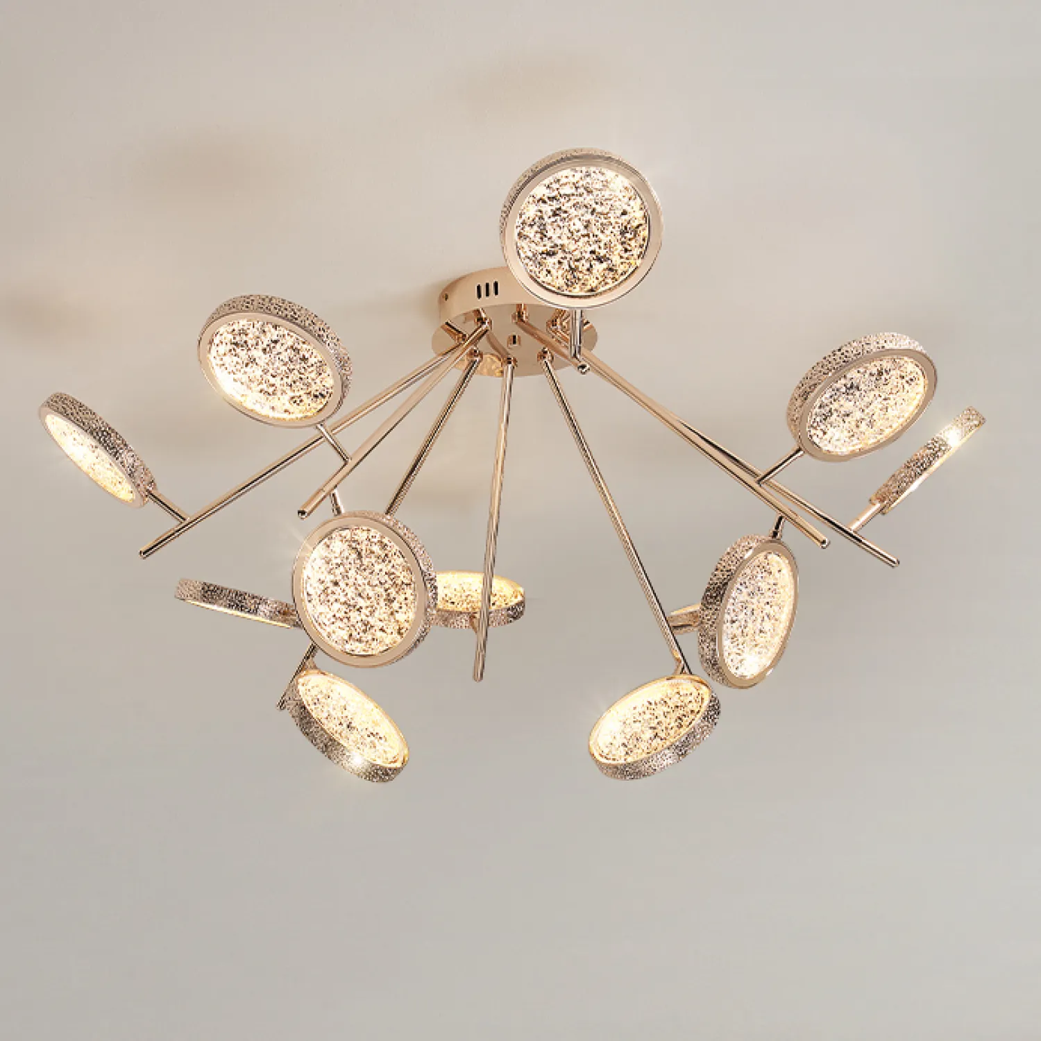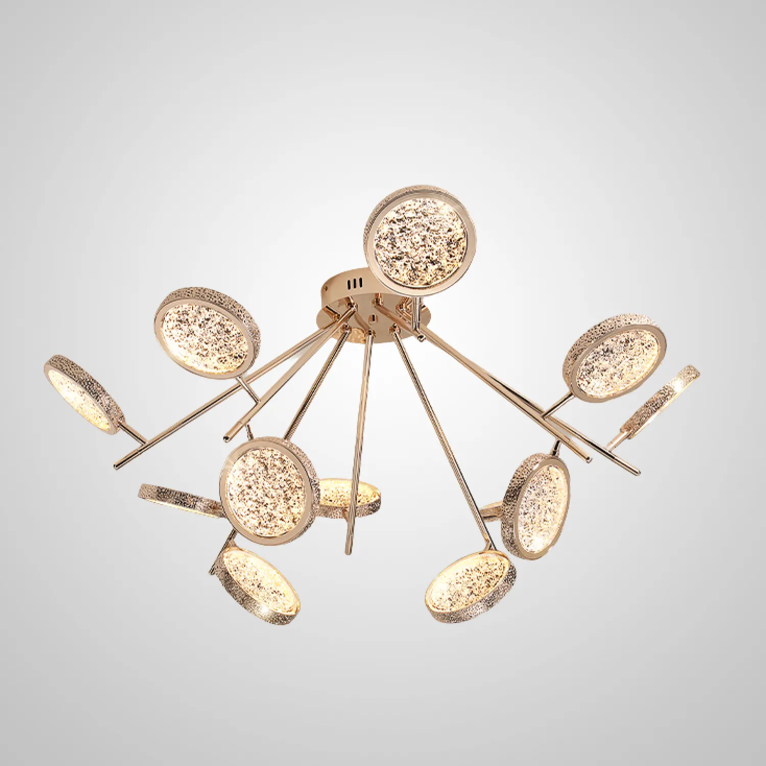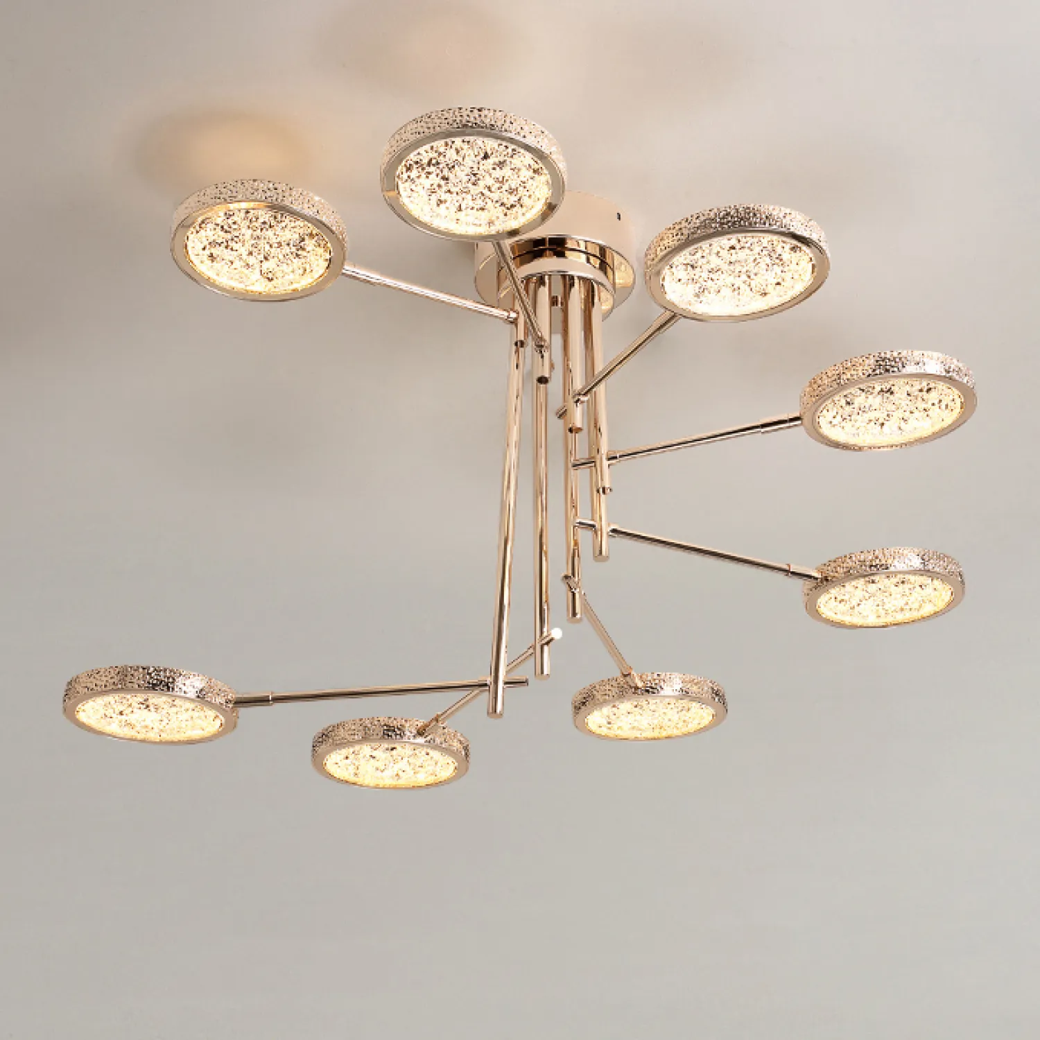Эта потолочная люстра идеально подойдет для гостиной, столовой или спальни, добавляя роскошный и изысканный акцент в ваш интерьер. Ее уникальный дизайн и непревзойденное качество сделают ваше пространство по-настоящему особенным и запоминающимся.