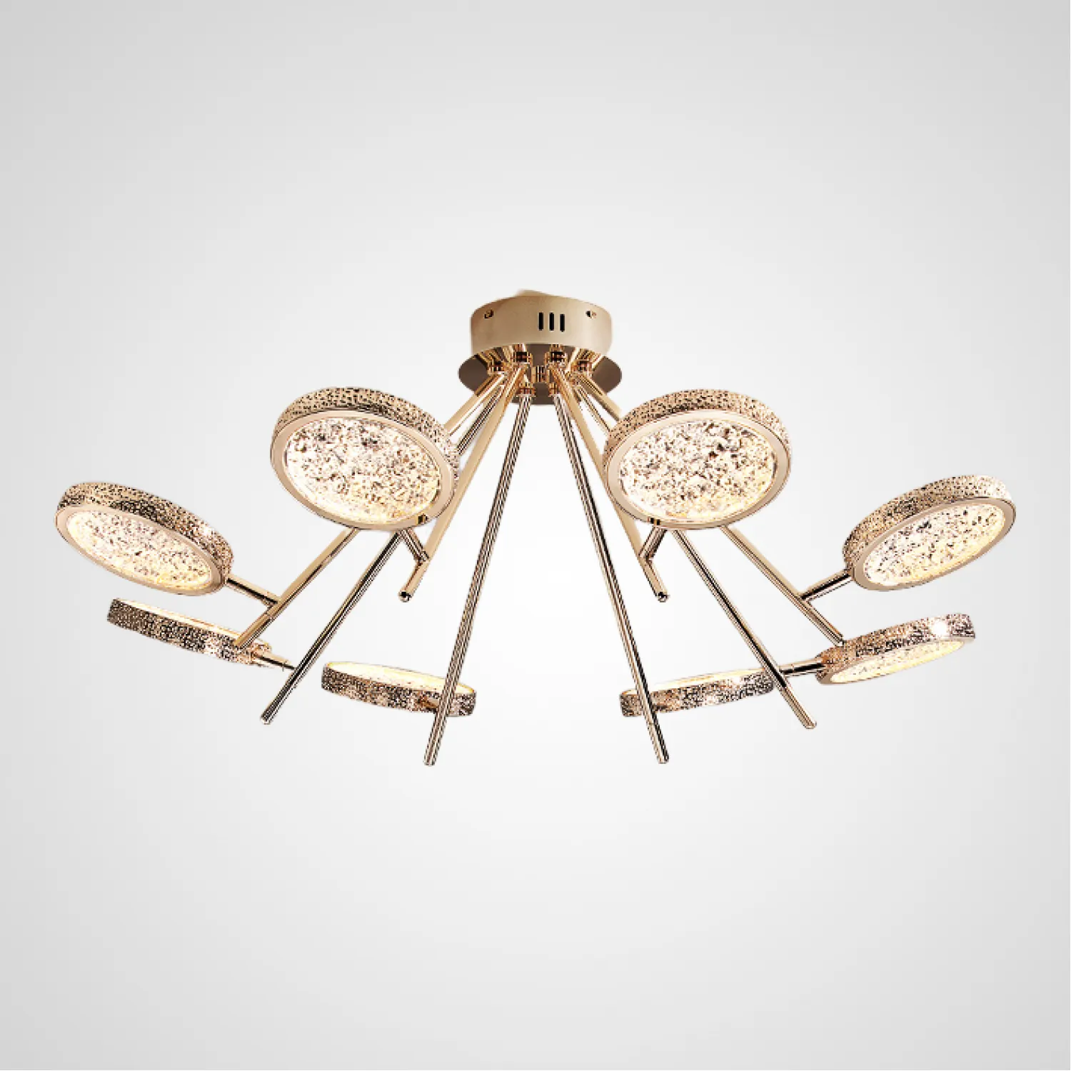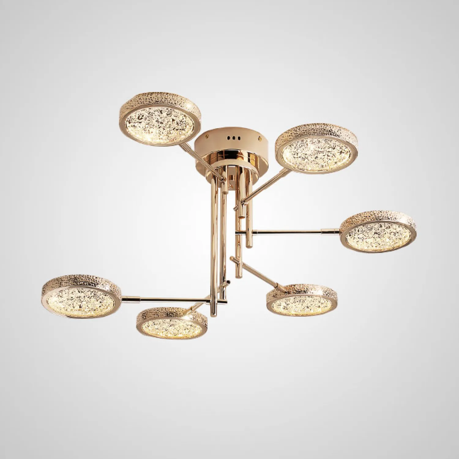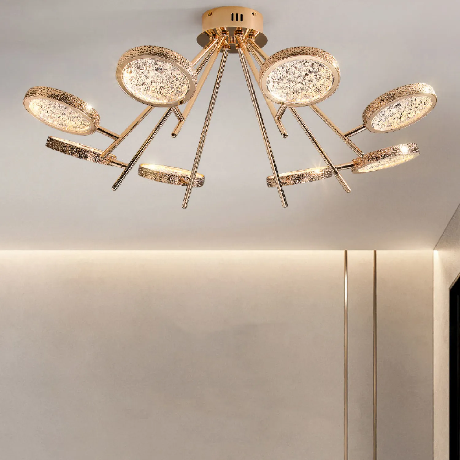 Эта потолочная люстра идеально подойдет для гостиной, столовой или спальни, добавляя роскошный и изысканный акцент в ваш интерьер. Ее уникальный дизайн и непревзойденное качество сделают ваше пространство по-настоящему особенным и запоминающимся.
