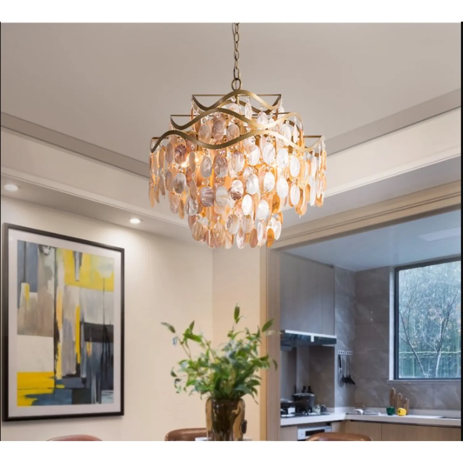 Благодаря своим большим размерам и многоуровневой композиции, эта люстра станет ярким акцентом в любом помещении. Она идеально подойдет для гостиной, столовой или даже спальни, придавая им изысканный и роскошный вид.