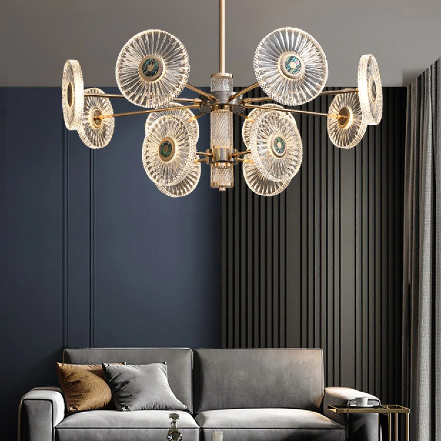 Эта потолочная люстра сочетает в себе изысканный дизайн и высокое качество исполнения. Ее элегантная форма и изысканные детали делают ее настоящим произведением искусства, которое привлечет внимание всех гостей.