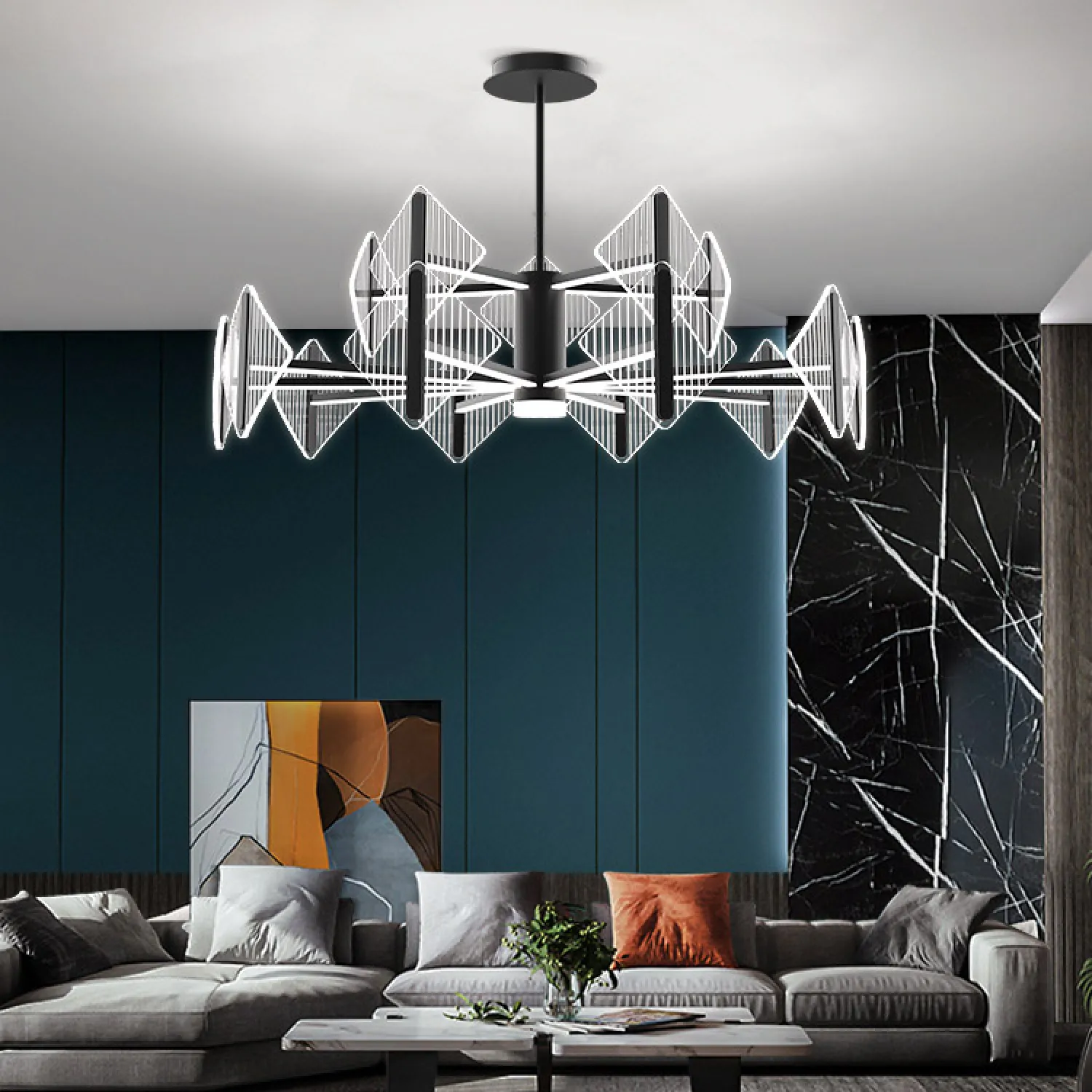 Благодаря использованию ламп с низким энергопотреблением, эта люстра является не только стильным, но и экологически чистым решением. Она обеспечивает яркое и равномерное освещение, что создает уютную и комфортную атмосферу в вашем доме.