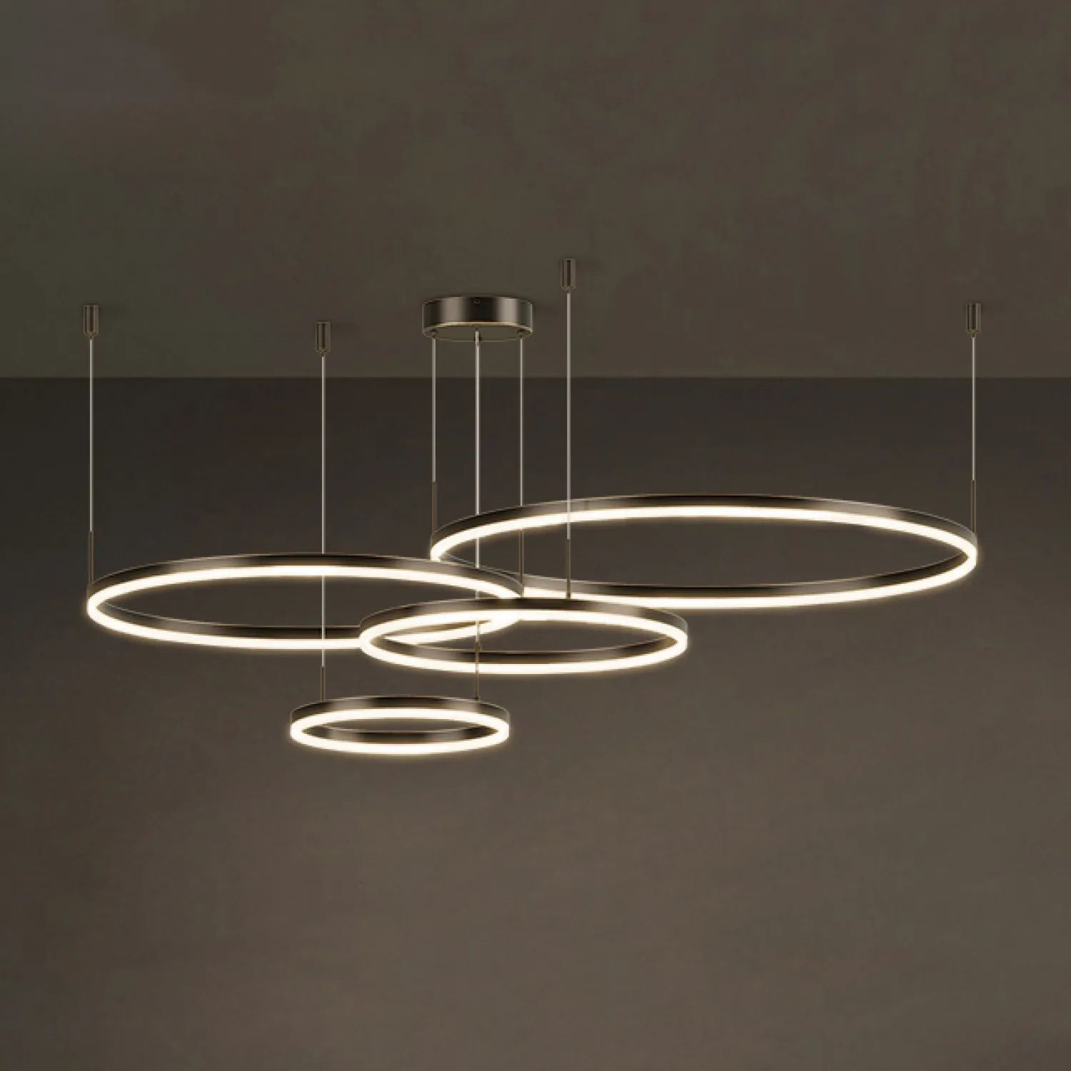 CRUISE BLACK LUX D60+80+100 оснащена тремя кольцевыми плафонами разного диаметра, что позволяет создать удивительный эффект слоистости и глубины света. Благодаря этому, люстра станет не только источником яркого и равномерного освещения, но и настоящим произведением искусства, привлекающим взгляды и восхищение гостей.
