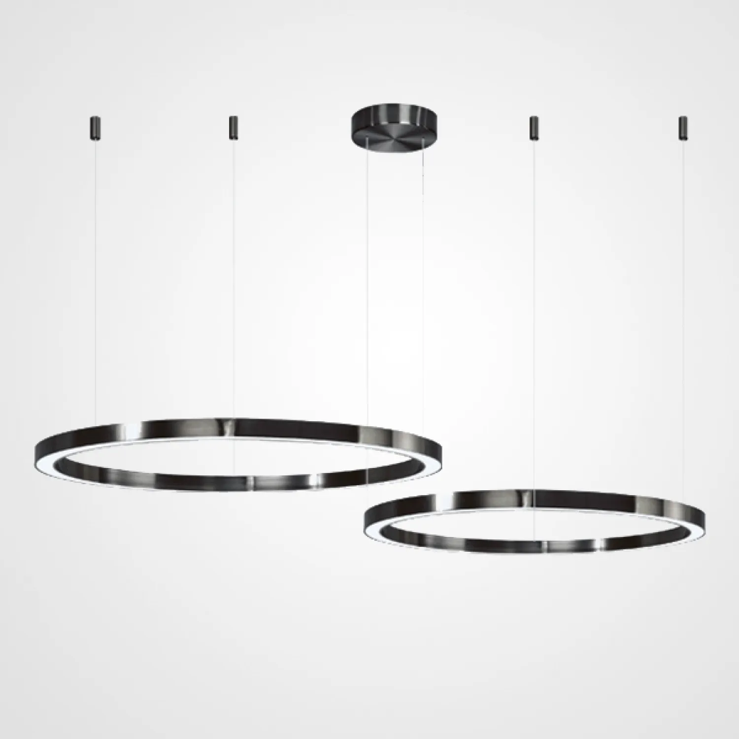 CRUISE BLACK D40+60+80+100 оснащена несколькими регулируемыми подвесами разной длины, что позволяет создать уникальную композицию и подобрать идеальную высоту для каждого помещения. Благодаря этому, она станет ярким акцентом в любой комнате, будь то гостиная, столовая или спальня.