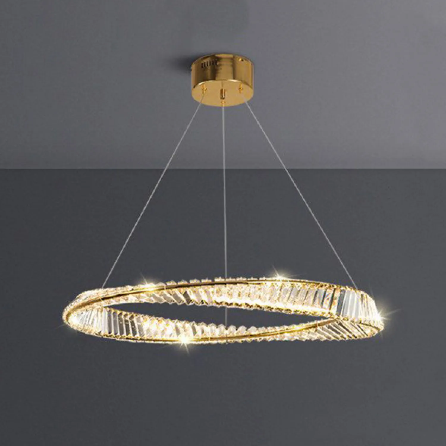 Сочетание металлического каркаса и кристаллических подвесок создает впечатляющий эффект, привлекая внимание и создавая неповторимую атмосферу. Благодаря своему дизайну и размеру (диаметр 60 см), эта люстра идеально подходит для помещений среднего и большого размера.