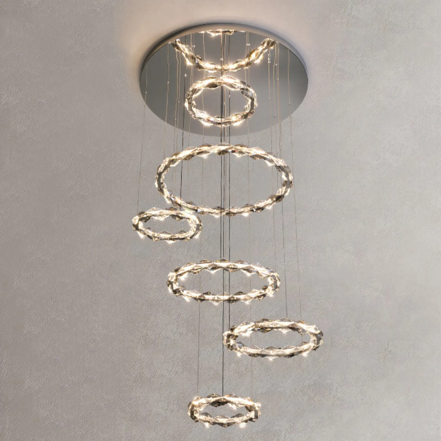 Эта люстра имеет шесть оснований разных размеров, что создает потрясающий эффект слоями и придает вашему помещению уникальный стиль. Благодаря своей просторной конструкции, она обеспечивает яркое и равномерное освещение в комнате, создавая приятную атмосферу.