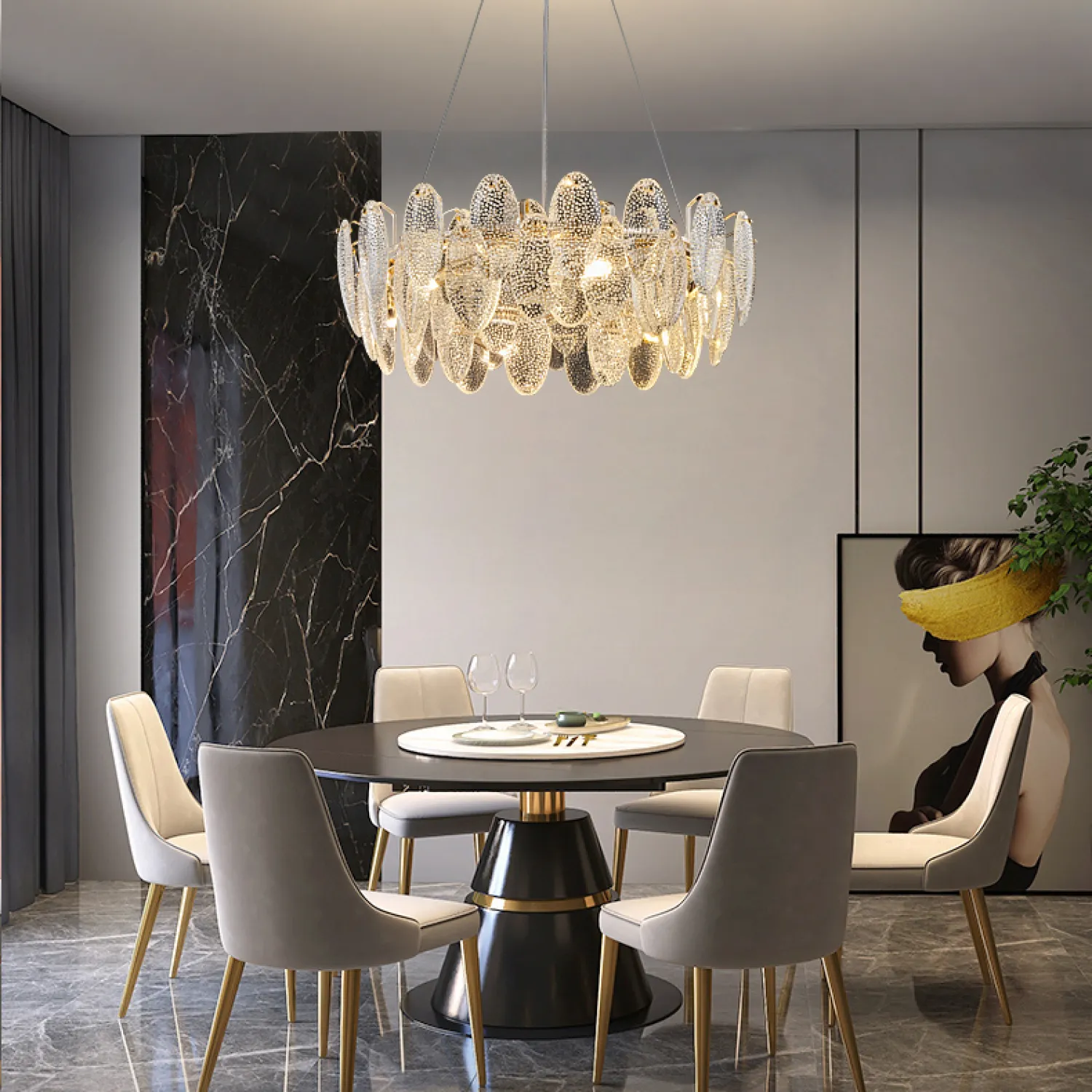 Эта подвесная люстра идеально подходит для гостиной, столовой или спальни, а также для коммерческих помещений, таких как рестораны или гостиницы. Она легко впишется в любой интерьер и станет его неотъемлемой частью.