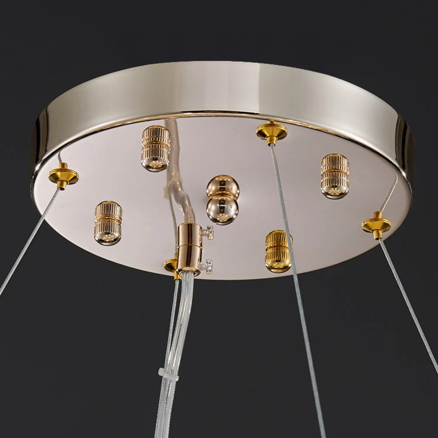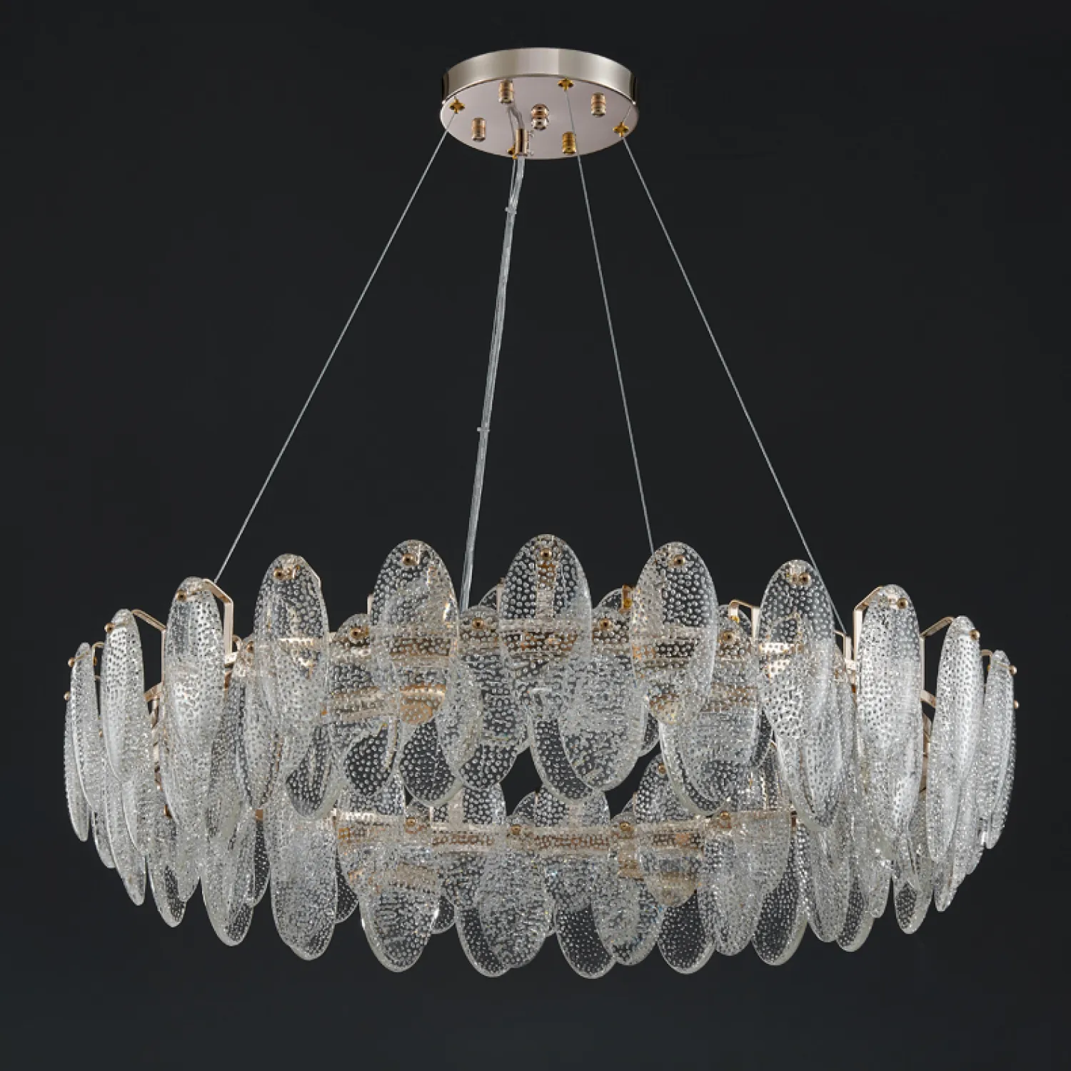 Люстра REEGNORA D100 имеет круглую форму и выполнена из прочного металла, что обеспечивает ее долговечность и надежность. Ее основание украшено изящными линиями, добавляющими шарма и элегантности.