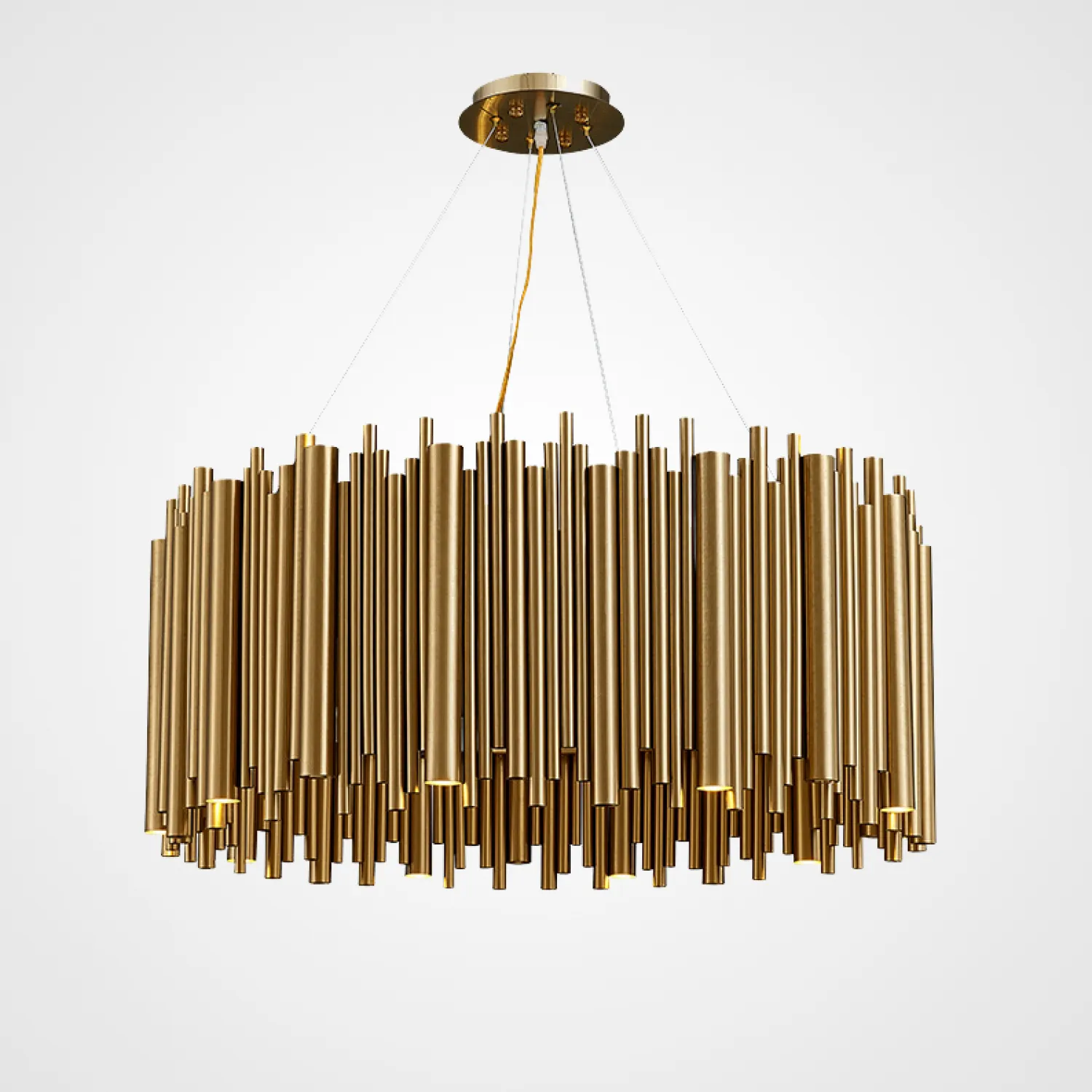 Люстры с абажуром из композиции трубок разного диаметра и высоты и встроенными в них источниками света. Выпускается круглой или овальной форм.