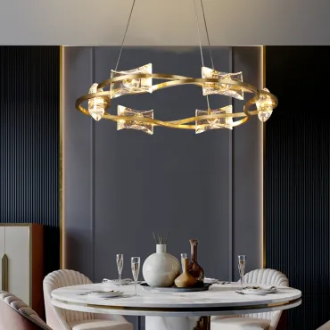 Эта потолочная люстра сочетает в себе элегантность и современный дизайн, создавая неповторимую атмосферу в вашем доме. Изящные подвески из хрустального стекла идеально сияют под светом, добавляя нотку роскоши в любое помещение.