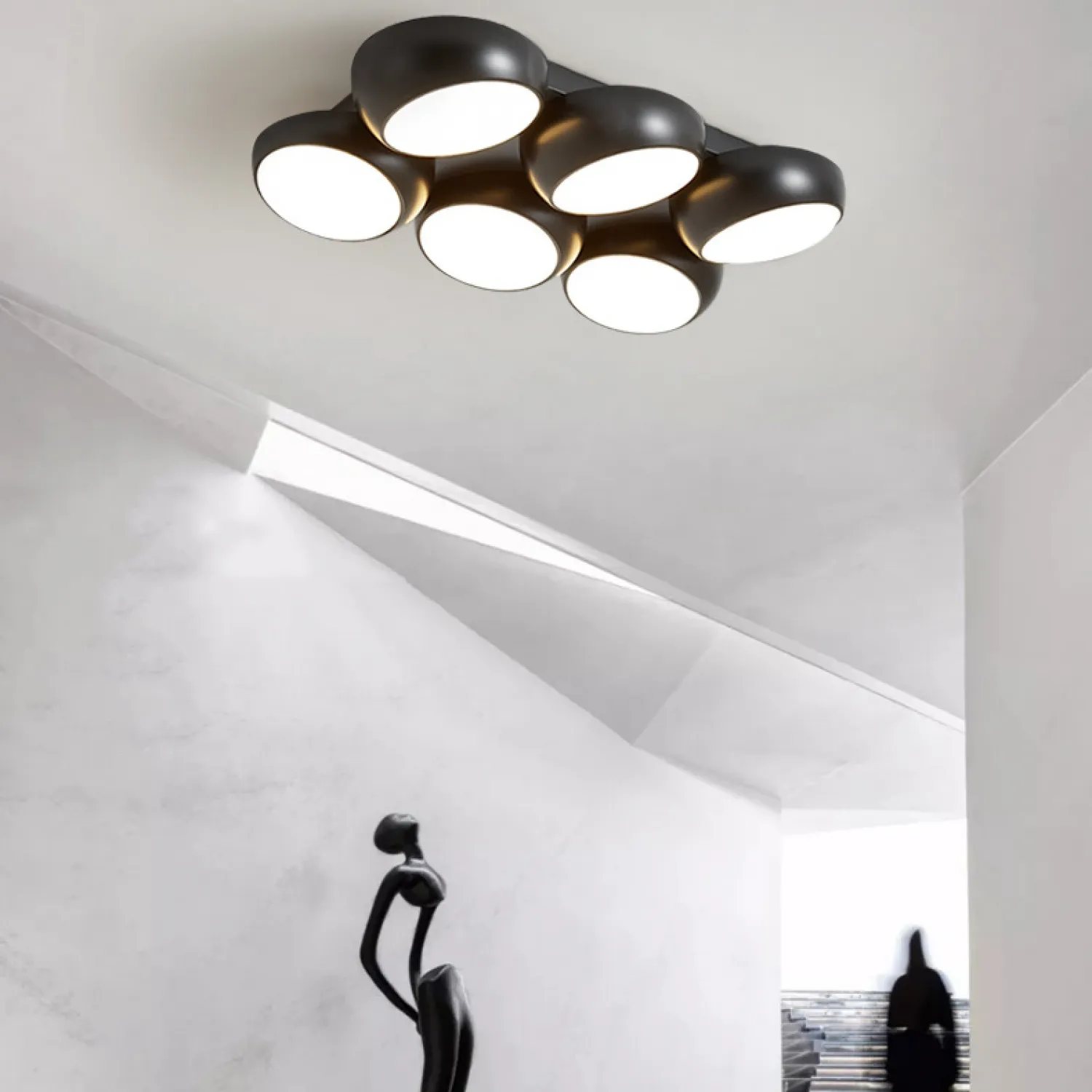 Этот потолочный светильник имеет современный дизайн с черным металлическим корпусом, который легко впишется в любой стиль и помещение. Он станет настоящим украшением вашего потолка, придавая ему элегантность и изысканность.