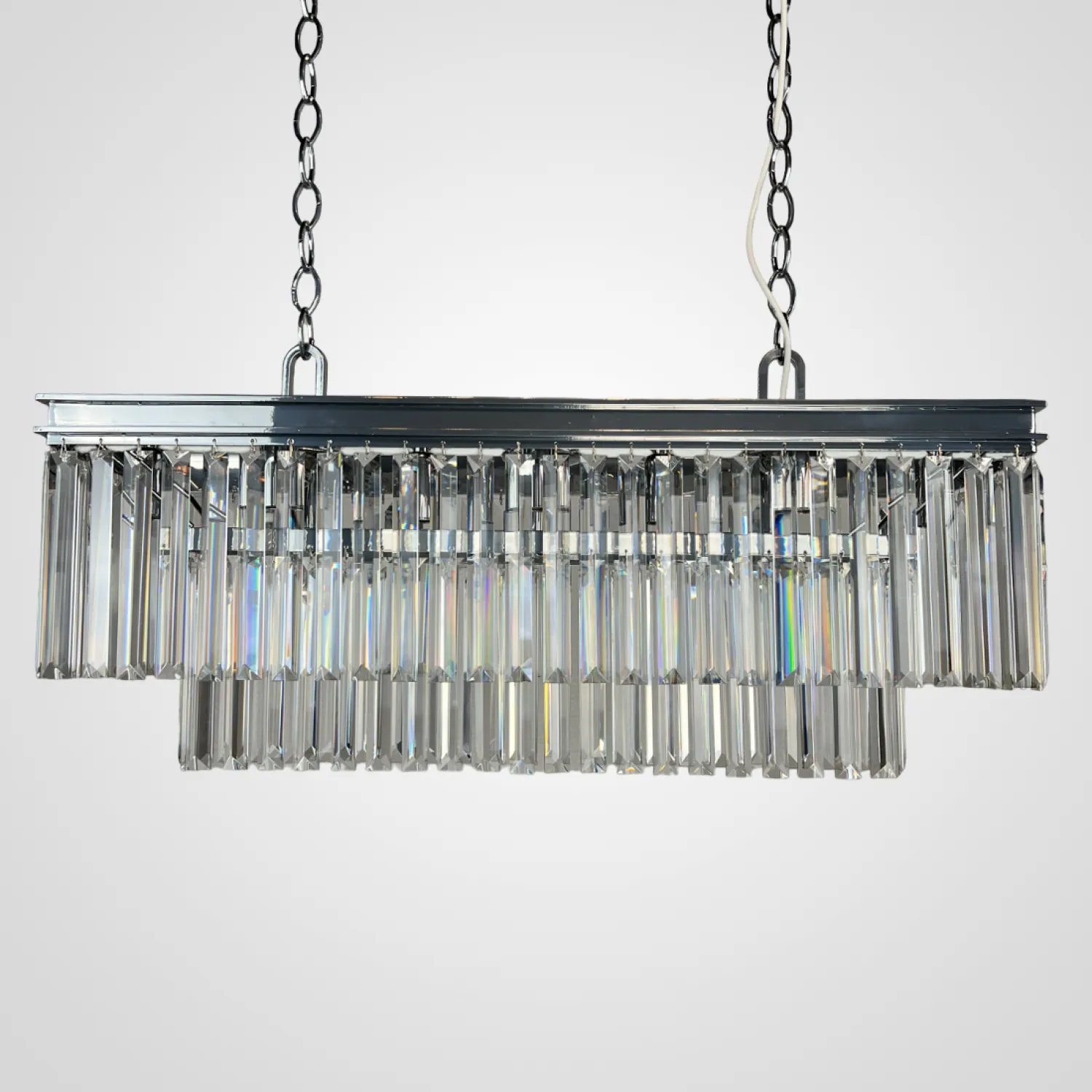 Магазин ImperiumLOFT представляет вашему вниманию Люстра RH 1920S ODEON CLEAR GLASS FRINGE 90 <span style="font-family: Roboto, RobotoDraft, Helvetica, Arial, sans-serif; font-size: 13px; white-space: pre-wrap;">chrome о</span>т лучших дизайнеров мира Данная модель настоящая находка для дизайнерских интерьеров и красиво впишется в ваш дизайн. Порадуйте свой дом мягким светом в согласно подобающим обрамлении! Тем более, когда оно возможно по особенно привлекательной цене. Все товары нашего магазина сертифицированы с гарантией от 12 месяцев. Интернет-Магазин ImperiumLOFT доставит Ваш заказ по Москве, Санкт-Петербургу и всей России. Купить представленную модель из раздела «Подвесная люстра» можно по цене указанной в карточке. <span style="font-size: 12px;">Представлены живые фото из нашего шоурума, а также видеообзор на данную модель можно посмотреть во вкладке "Видео".</span> <div> </div> Люстра RH 1920S ODEON CLEAR GLASS FRINGE chrome - это великолепное сочетание стиля и элегантности, которое привнесет неповторимый шарм в ваш интерьер. Изготовленная в стиле 1920-х годов, эта люстра является идеальным выбором для тех, кто ценит классическую эстетику и роскошь. Ее хромированная основа придает ей блеск и изысканность, а стеклянные подвески создают потрясающий эффект света и тени. Благодаря своему превосходному качеству и внимательно продуманному дизайну, эта люстра станет не только функциональным источником света, но и великолепным элементом декора. Она прекрасно впишется в любой интерьер, добавив ему шарма и роскоши. Люстра RH 1920S ODEON CLEAR GLASS FRINGE chrome - это идеальный выбор для тех, кто стремится создать неповторимую атмосферу стиля и роскоши в своем доме или офисе. Позвольте этой люстре стать воплощением вашего хорошего вкуса и утонченности.